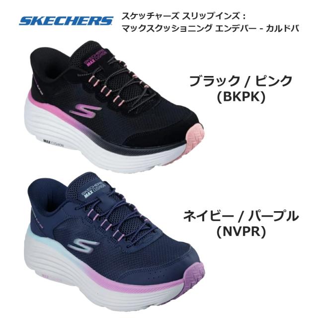 スケッチャーズ レディース スニーカー スリップインズ マックスクッショニング エンデバー - カルドバ 129474 手を使わず履ける SKECHERS Slip-ins MAX CUSHIONING ENDEAVOUR - CARDOVA レディース スニーカー ブラック/ピンク(BKPK) ネイビー/パープル(NVPR) 22.0cm-26.0cm