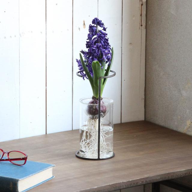 大きく長く育つ球根の水耕栽培などをサポートするフラワースタンドです。花が重くなり傾いてしまったときでも、これを使えば支えになり安心です。