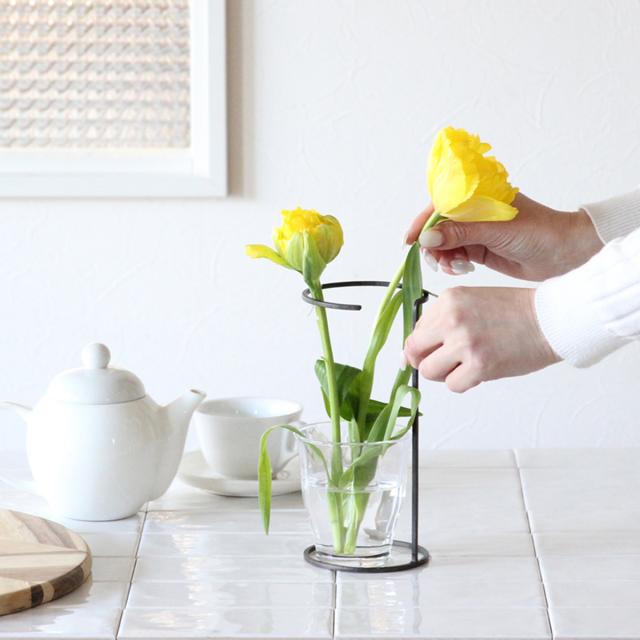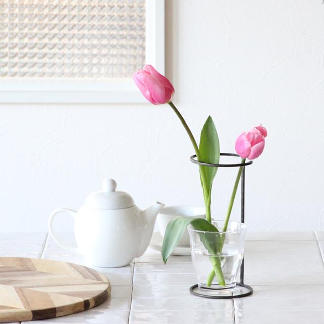 1本のアイアンで作られたシンプルデザインで、どんなフラワーベースとも合わせやすいです。