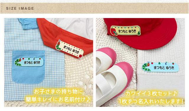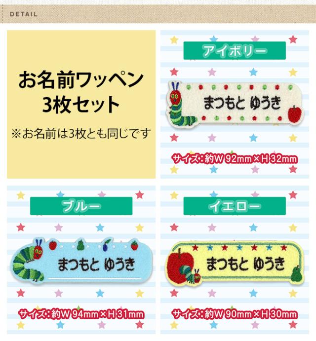 お名前ワッペン はらぺこあおむし 絵本 キャラクター 1行 3枚セット ネームワッペン アイロン 入園 刺繍 プレゼント OR