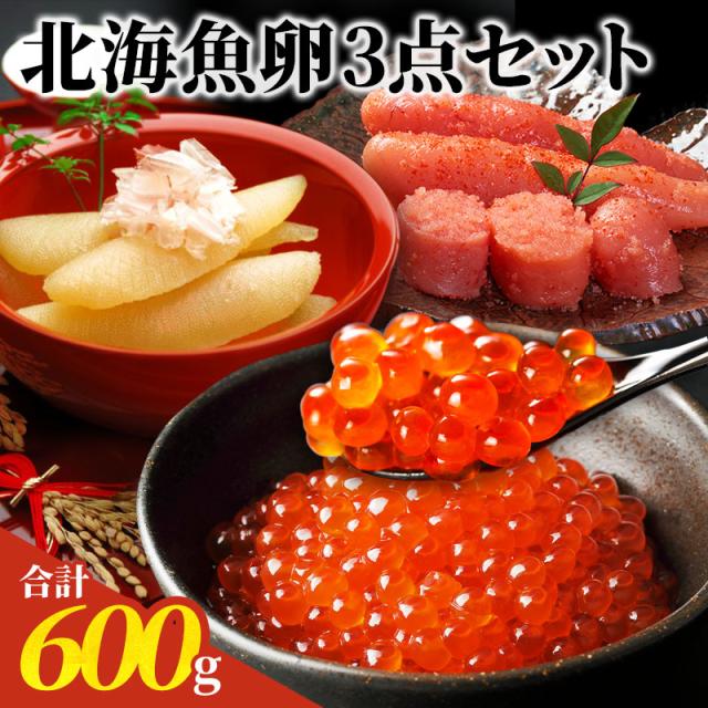 豪華北海魚卵3点セット いくらしょう油漬け 塩数の子辛子明太子 詰め合わせ セット お取り寄せ 贈答 お歳暮 年末年始 お正月
