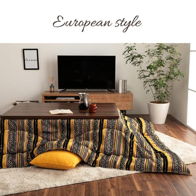 | "ストライプ調の中に幾何柄をデザインし、派手さと深みのあるこたつ布団。 ジャガード織で織った細かいデザインとしっかりとしたトルコ製の生地が高級感を演出してくれます。 裏地はあったかフランネル生地でなめらかな肌触り。 中綿には弾力性と保温性に優れた東レマッシュロン綿をたっぷり使用。 表地のデザインとふっくらした見た目が合わさって高級感漂う一品です。 ふっくらとしたボリューム感は国内で綿入加工をしている商品だからできる仕上がり。 熱が逃げにくいフィットキルト加工であたたかさを維持してくれます。 3サイズ展開 ※モール糸を使用しているため、粘着クリーナーでお掃除されますと繊維が抜けることがあります。ご使用はお控えください。 ※こたつ台、敷布団は別売りです。 ※掲載写真は表記サイズと異なる場合がございます。 ※ふとんをやぐらの中に押し込んだり、座イスやイス全体をこたつの中に入れたまま使用しないでください。ふとんがヒーターに当たらないようにご使用ください。(火災の原因になります)ご使用により、ふとんが焦げた場合につきましては、返品・交換を承ることができませんので、あらかじめご了承ください。 ※画面上のカラーはご使用ブラウザやモニターの設定により、実物とは若干異なる場合がございます。 あらかじめご了承の上、ご注文をお願いいたします。 |