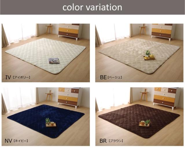 | 中わたに抗菌防臭加工を施した無地のキルトラグカーペットです。表地には柔らかく、肌触りの良いフランネル生地を使用してます。毛足が短いので掃除機もかけやすく、毛足にゴミや埃が絡みにくいという特長もあります。フローリングを傷つけにくいよう、裏には不織布を貼っています。またすべりにくい加工も施しておりますので、フローリングでも安心してご使用頂けます。中材にはウレタン10mmを使用しておりますので、適度なボリュームとクッション性があります。また、表地の素材が同じで同色のコタツ掛け布団も別途取扱いがありますので、トータルでのコーディネートもおすすめです。コタツ敷布団、ホットカーペットカバーにも適しています。床暖房にも対応しています。※本商品は圧縮梱包でのお届けとなります。商品が届きましたらお早めに開梱して頂き、2~3時間日陰干しをして頂くと復元が早まります。 |