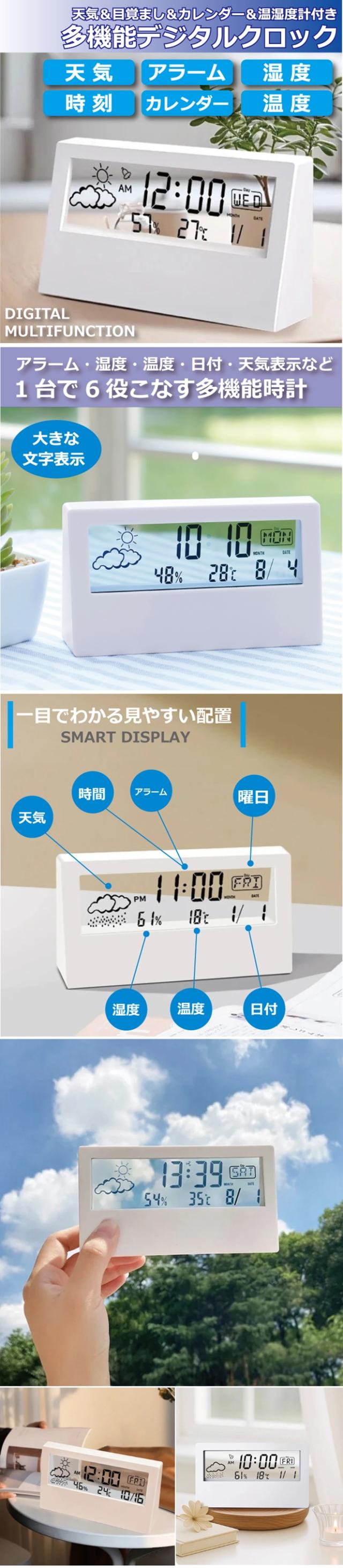 置き時計 多機能 デジタル時計 シースルー クリア 時計 スケルトン ホワイト デジタル アラーム 天気 温度 湿度 カレンダー 目覚まし時計 電池式 透明 おしゃれ コンパクト 天気時計 送料無料 ポイント消化