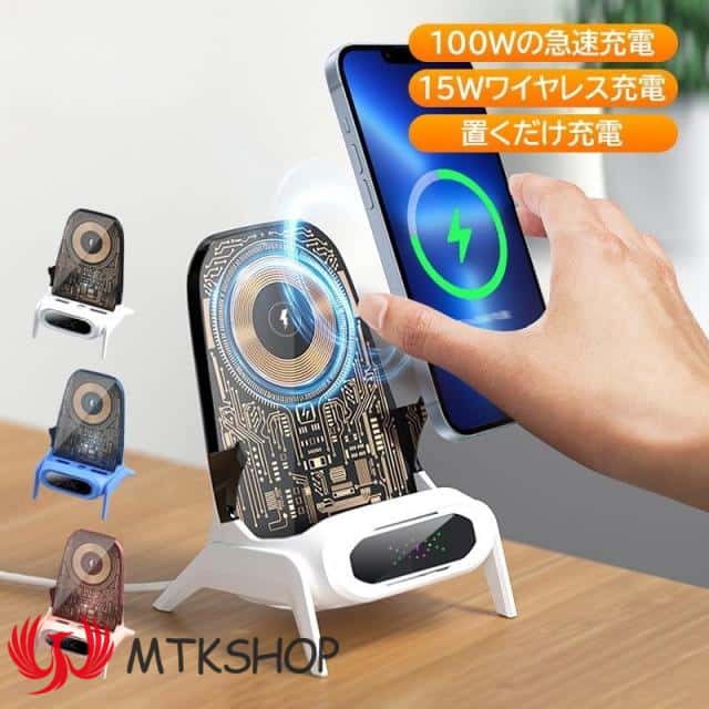 ワイヤレス充電器は、15Wの高速充電機能と100Wマグネット式急速充電、安定した小椅子型のスマホスタンドを兼ね備えた多機能アイテムです。