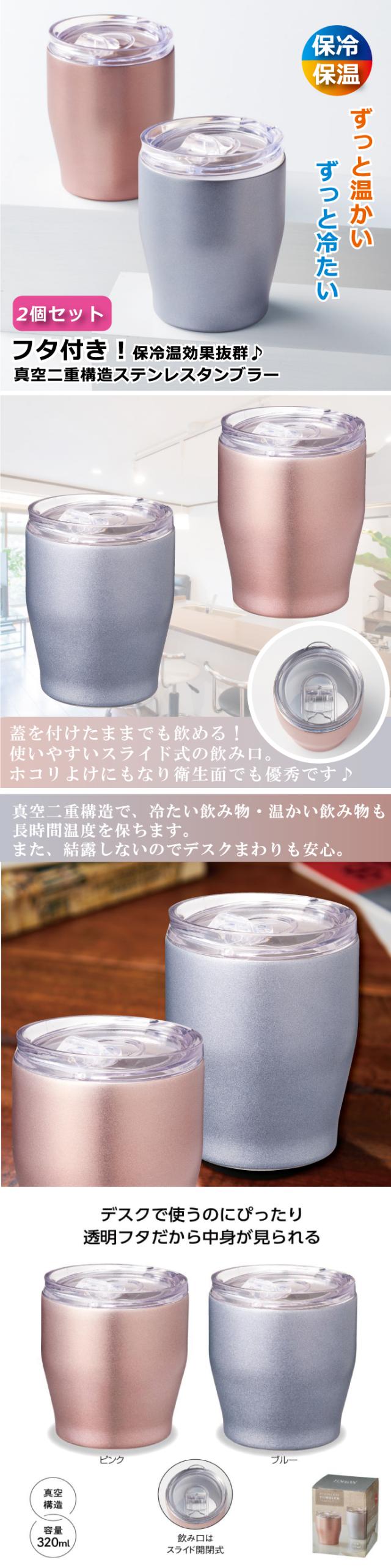 フタ付 ステンレスタンブラー 2個セット 320ml 保冷 保温 訳あり ステンレス タンブラー ペア 蓋つき マグカップ コップ ピンク ブルー 真空 送料無料 ポイント消化 食器 プレゼント ペアマグカップ