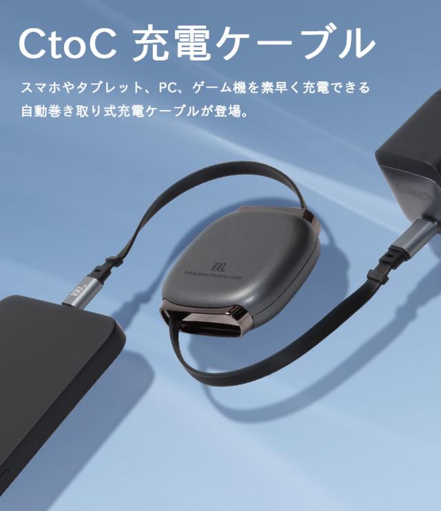Type-C to Type-C 自動巻き取り式充電ケーブルが登場!