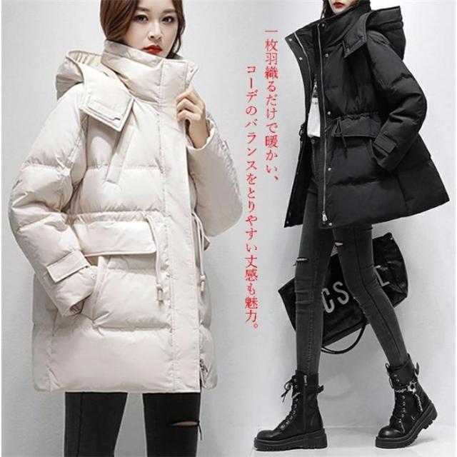 ダウンコート レディース フード付き ダウンジャケット アウター 厚手 コート 秋 冬 中綿 ミディアム カジュアル 防寒 冬服 通勤 中綿ジャケット キレイ