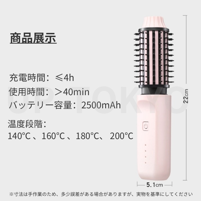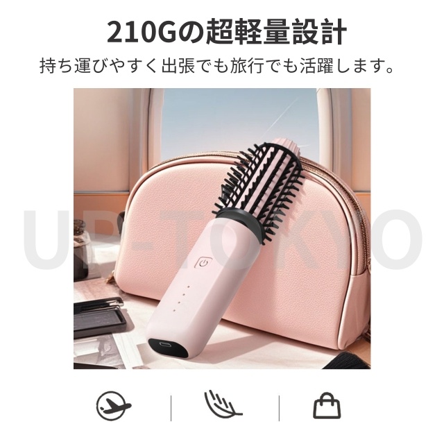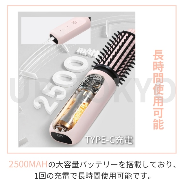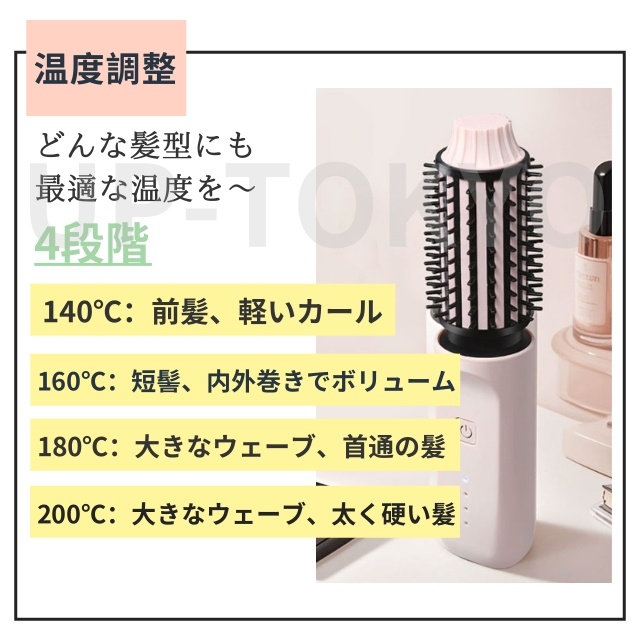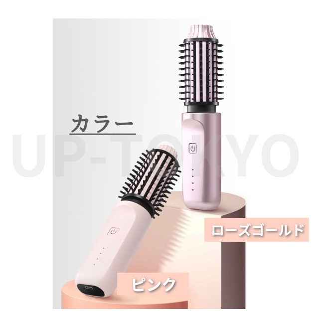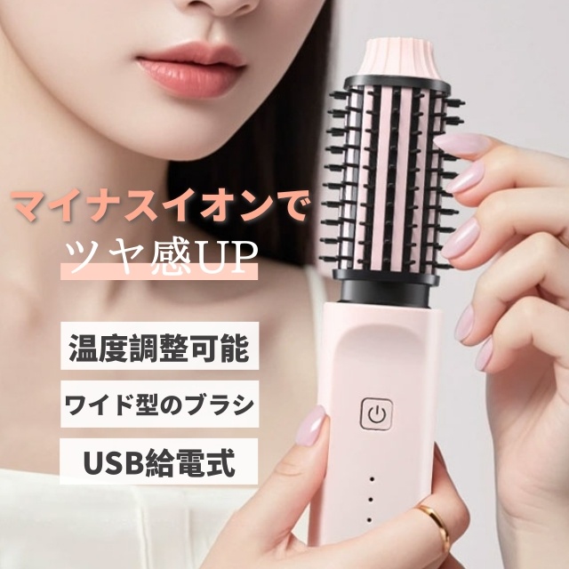 ヘアアイロン ヒートブラシ カールアイロン マイナスイオン ストレート ロールブラシアイロン 2way USB充電 温度調整 急速