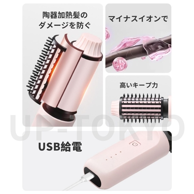 ヘアアイロン ヒートブラシ カールアイロン マイナスイオン ストレート 急速加熱 ロールブラシアイロン 2way USB充電 温度調整 急速 2wayスタイリング ストレート&カール 温度 調整 マイナスイオン
