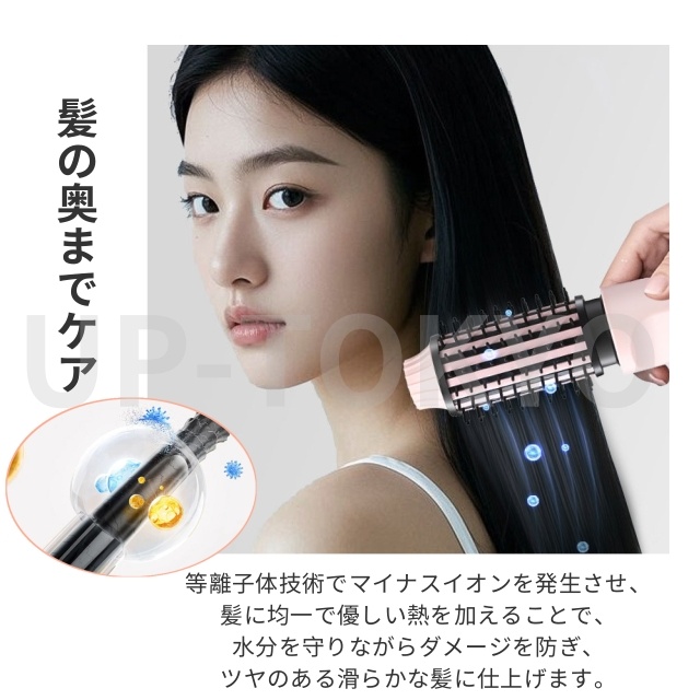 マイナスイオンが髪のキューティクルを整え、熱ダメージを軽減しながらスタイリング。