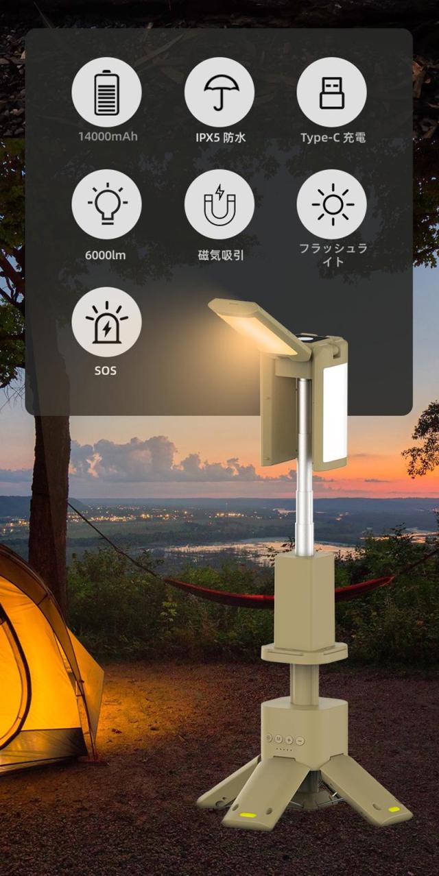 LEDランタン 充電式 伸縮式LEDランタン 1台多役 14000mAh大容量 20時間連続点灯 IPX5防水 明るい ポータブル コンパクト アウトドア/防災/キャンプ/非常用
