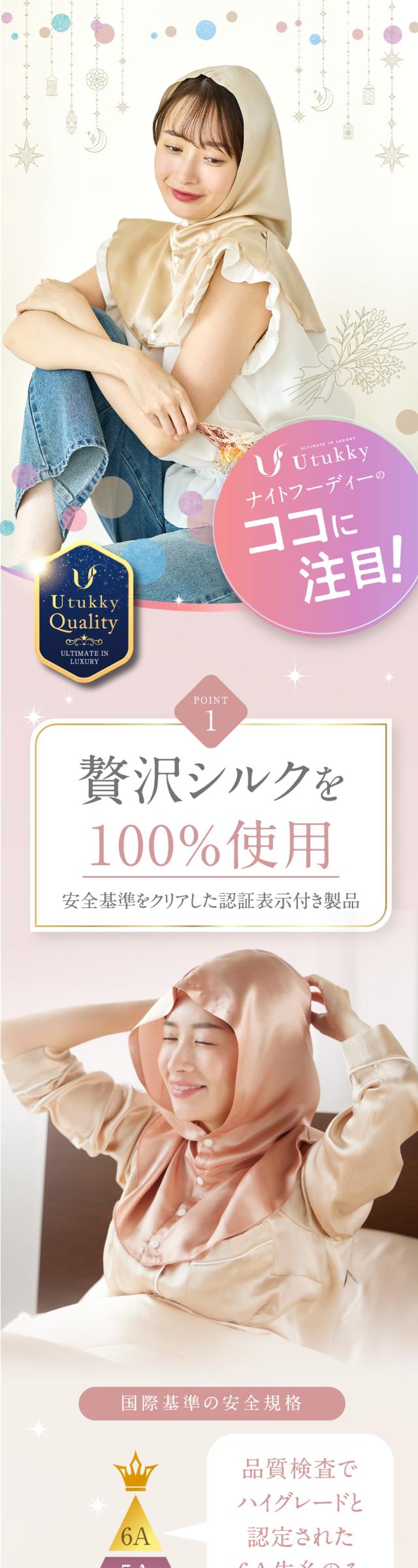 【Utukky 公式】ナイトキャップ シルク ナイトフーディ ユーツキー シルク キャップ フードタイプ シルク100% シルクナイトキャップ ロングヘア用 朝までズレない 枝毛・寝癖防止 保湿美髪 髪質改善 誕生日 プレゼント