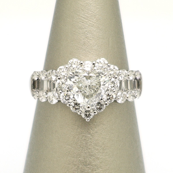 ハートシェイプ ダイヤモンド ダイヤモンド(脇石) ※リング内側に刻印があり、石目は「1.067ct/1.03ct」と分かりますが 中石と脇石どちらがどちらの石目かは分かりかねます。ご了承ください。 |
