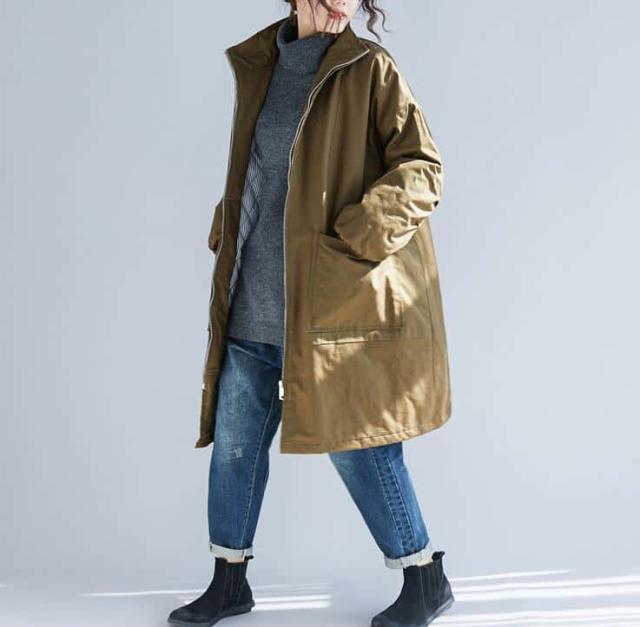 - 身長160cmでLサイズを購入しました。袖も丈も丁度良く中にセーターを着てもゴワつかず満足です。