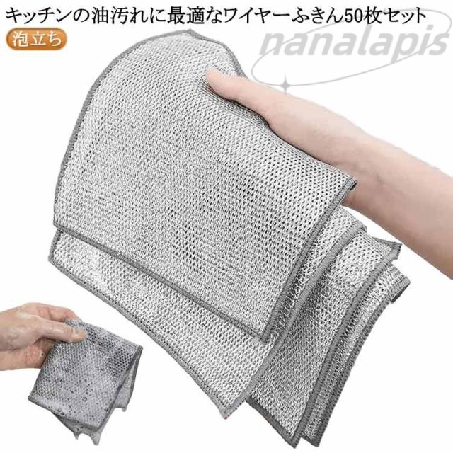 ワイヤーふきん 50枚セット キッチンクロス 食器用雑巾 金属ワイヤーふきん 食器洗い 泡立ち 焦げ コゲ 汚れ 除去 油汚れ メッシュクロス 傷を着けず ボトル洗浄 食器拭き 多目的 家庭用 業務用 ワイヤータオル 食器用 雑巾