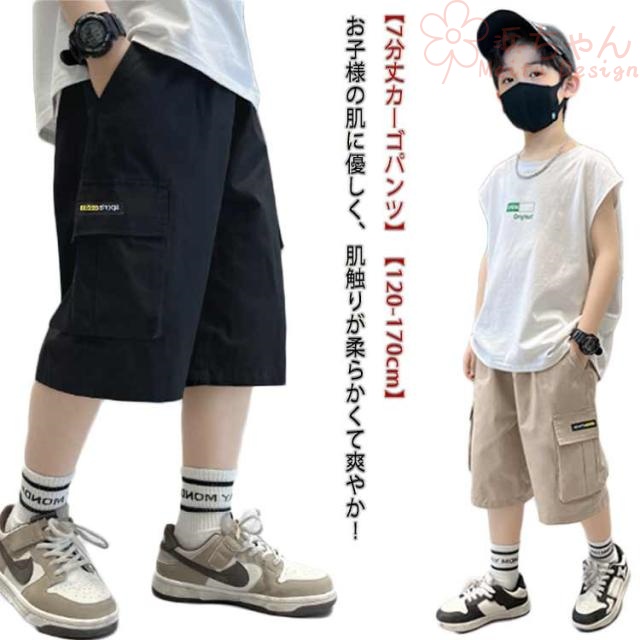 男の子 子供服 パンツ ボトムス ハーフパンツ キッズ 7分丈 夏 ジュニア 薄手 子ども ショートパンツ イージーパンツ 小学生 ハーフパンツ カーゴパンツ カジュアル ウエストゴム おしゃれ 幼稚園 小学校 通園 通学 120 130 140 150 160