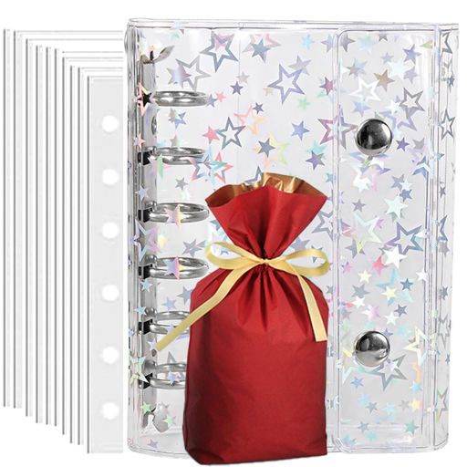 シール帳 A7 バインダー 女の子 はがせる 透明ファイル 3Dシール対応 バインダー&シール台紙 3層構造 (A7 +星柄+ラッピング袋)