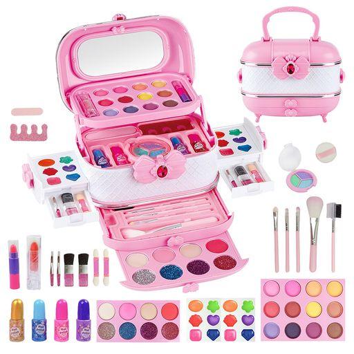 【子供用メイクセット - すべてを満たすセット!】この豊富な子供用化粧品セットには、さまざまな子供用化粧品が含まれています:アイシャドウは4種類のグリッター、16色のマット、そして3色のポータブルアイシャドウパレット;リップグロス、チーク、口紅、メイクブラシ、ネイルポリッシュ、ネイルシール、爪やすり、鏡など。子供のあらゆるおしゃれのニーズに対応できるため、化粧品セットの第一選択です!
