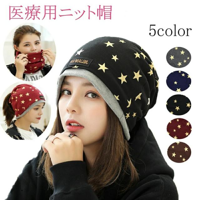 【10%offクーポン配布中】ニット帽 医療用 帽子 秋冬 厚手 星 レディース メンズ 抗がん剤 小顔効果 冬物 日よけ ストレッチ 折り畳み可能 男女兼用 女の子 外出用 防風 防塵 保温 ケア帽子 脱毛症 おしゃれ 就寝用