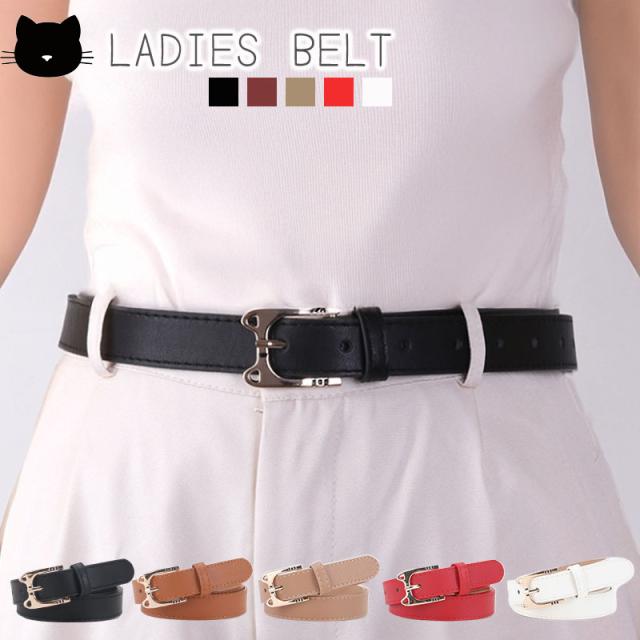 ベルト レディース おしゃれ ねこ 細 ワンピース用 バックル ゴールド 黒 白 ブラック ホワイト 細い ビジネス カジュアル 細め ゴルフ スポーツ スーツ ジーンズ 1000円ポッキリ 社会人 高校生 OL 中学生 ギフト プレゼント