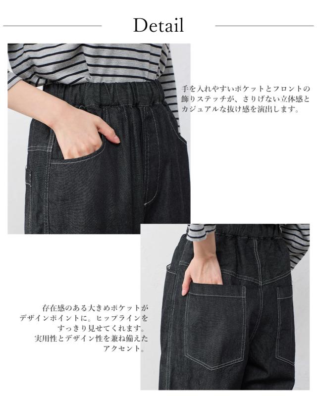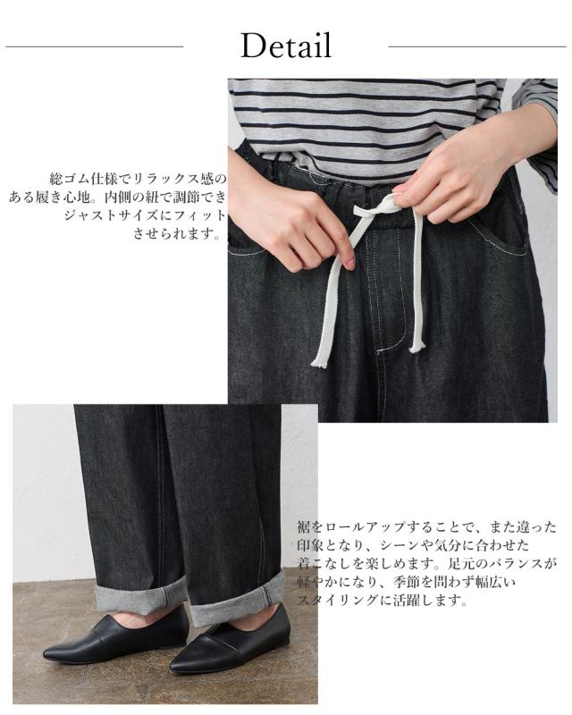 ウエストゴム 調整紐付き 綿100% コットンデニム