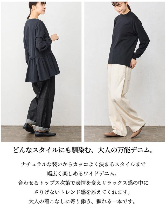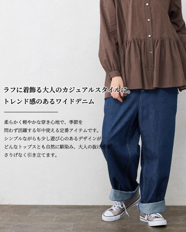 日本製 デニムパンツ レディース ワンドパンツ ワイドデニム ジーンズ ボトムス 綿100% 洗い加工 ワイドストレート ボトムス カジュアル おしゃれ 40代 50代 春 夏 秋 冬 通年 ワンウォッシュ ナチュラルコーデ 大人ナチュラル 体型カバー リラックスパンツ