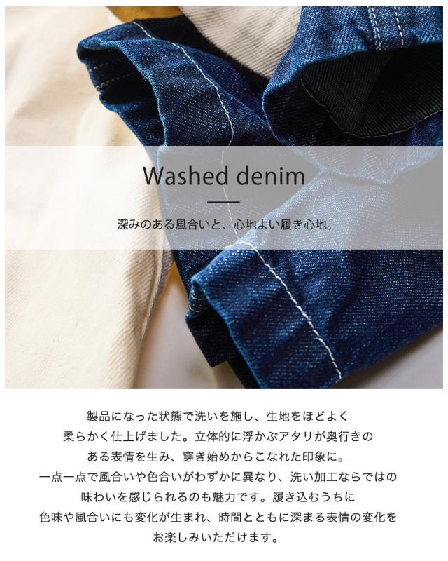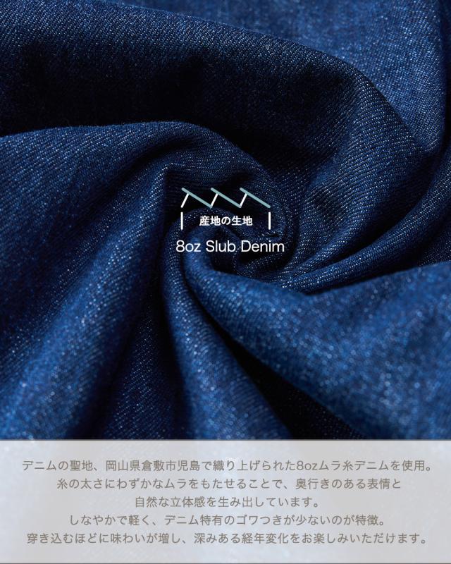 倉敷・児島の工房で丁寧に織り上げたムラ糸デニムを使用。