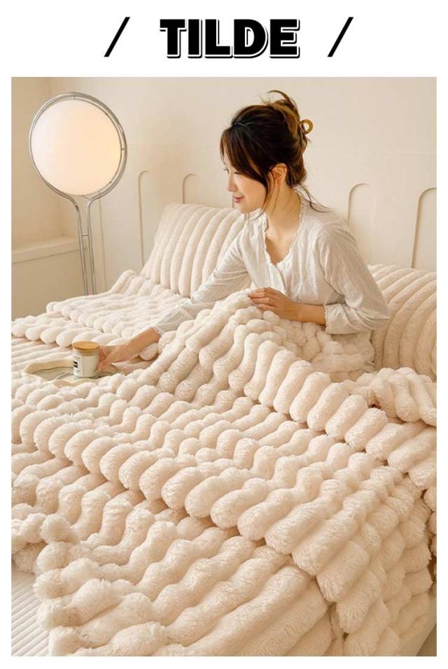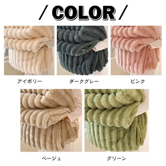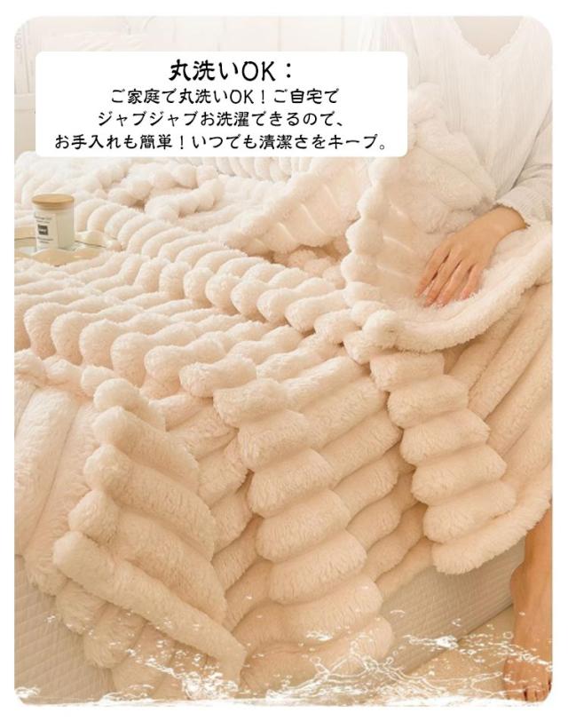 | フェイクラビットファー生地を使用した、おしゃれで暖かいブランケットです。【100*150cm?150*200cm?180*200cm?200*230cm】 ◆素材の特長:あったか素材フェイクラビットファーを使用。フェイクラビットファーの魅力としては、軽量なのに優れた保温性を持つことが挙げられます。超極細繊維が空気を取り込み、体温を逃しません。 フェイクラビットファー生地で撫でていたくなるほどの、とろけるような肌触り。暖かさをキープしてくれます。 ◆静電気防止加工:空気が乾燥する冬場のイヤな静電気を防止します。静電気が起こると、ホコリも吸い寄せてしまいます。パチパチストレスを感じず、衛生的、快適にお使いいただけるように、静電気防止加工を施しました。※静電気を完全に除去するものではありません。静電気を抑制する加工です。 ◆丸洗いOK:ご家庭で丸洗いOK!ご自宅でジャブジャブお洗濯できるので、お手入れも簡単!いつでも清潔さをキープ。 | |