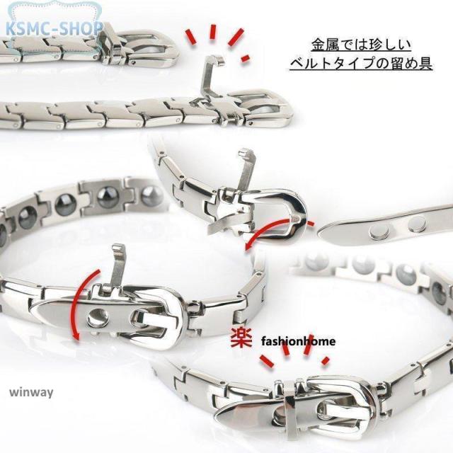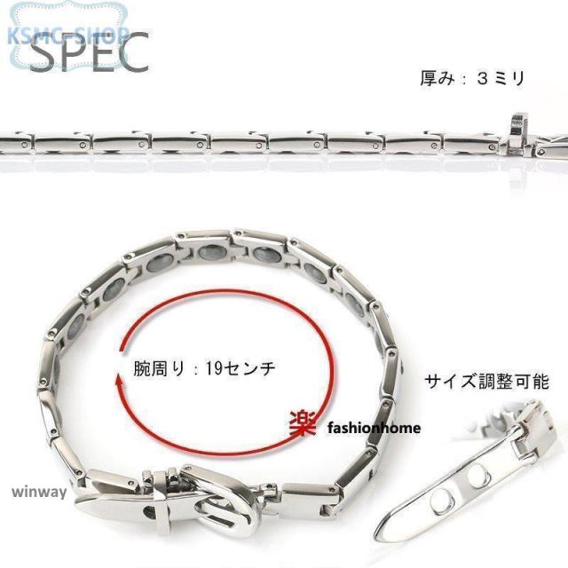 磁気ブレスレット 静電気除去 ステンレス シルバー ブレスレット ベルト バックル 細身 シンプル 金属アレルギー リンクブレスレット 磁力 磁石 316L