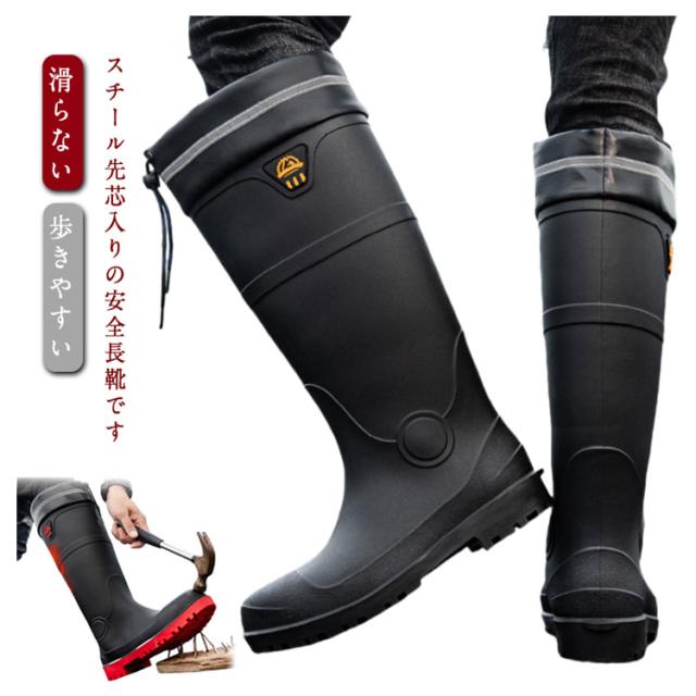 履き口カバー 安全靴 ロングブーツ 父の日 先芯あり 紐付き 鋼製 メンズ 長靴 雨 アウトドア 防水 セーフティーブーツ レインブーツ 滑らない 長靴 雪 キャンプ 農作業 災害時 芯入り 歩きやすい 靴 男性 作業靴 現場 土木