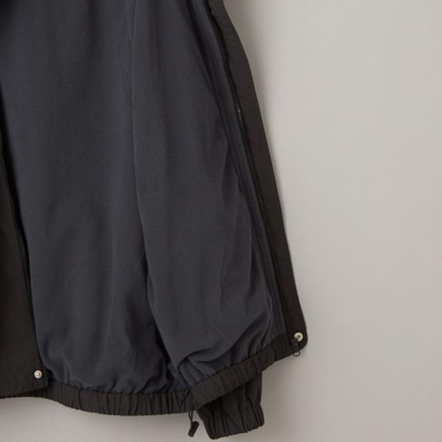 表地には軽く風を通しにくいナイロン素材を使用し、裏地には柔らかなフリースを施すことで、軽やかさと暖かさを両立。
