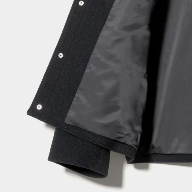 バーシティジャケットのディテールをベースに、ミニマルに再構築したノーカラーショートブルゾン。