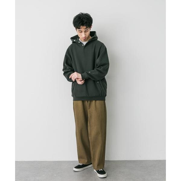 ・柔らかな裏起毛のスウェットパーカーなので一枚でもライトアウターとの合わせはもちろん、冬は本格的なアウターと合わせることで長いシーズンで活躍します。