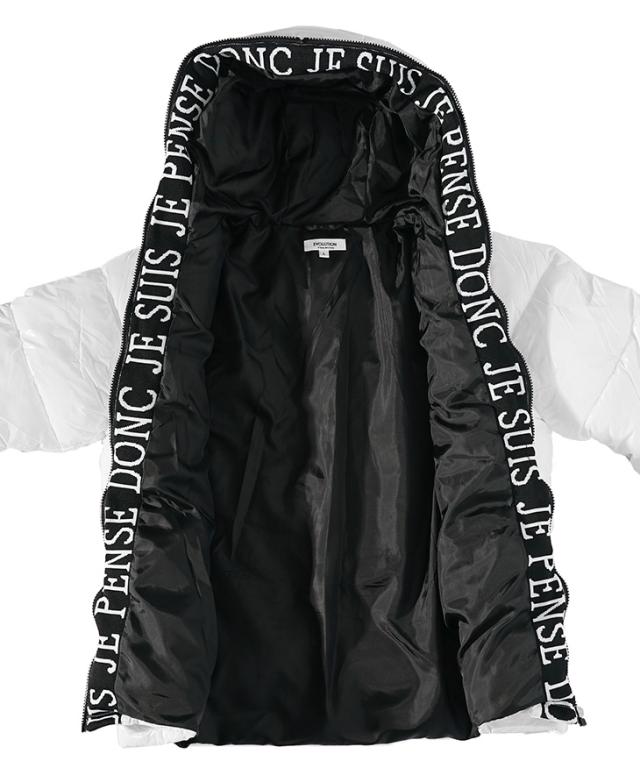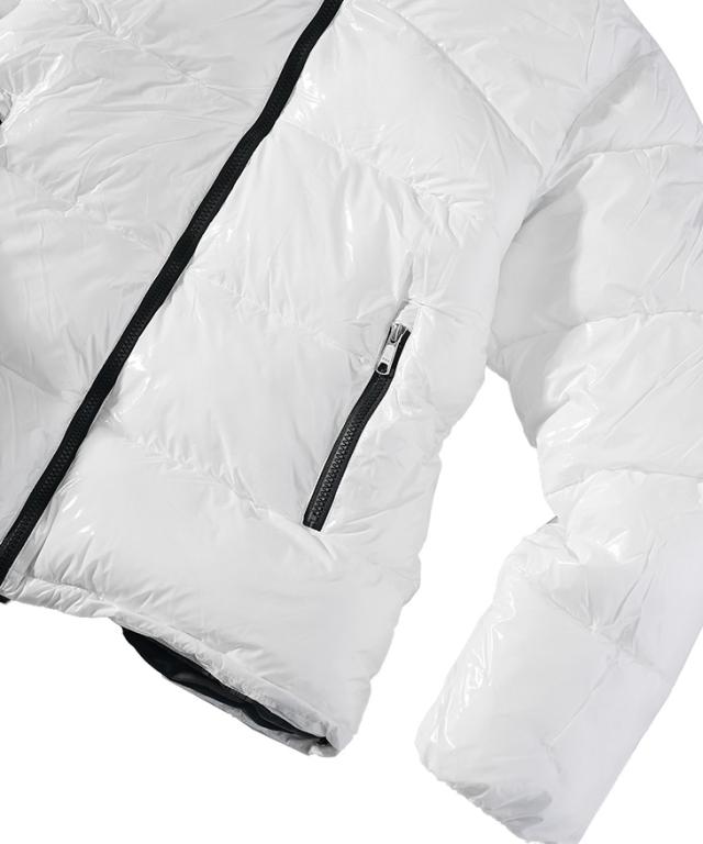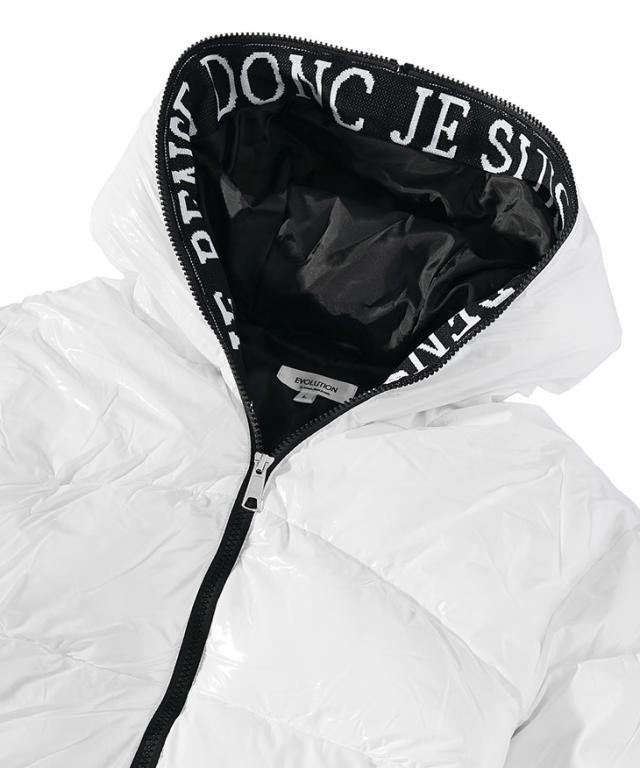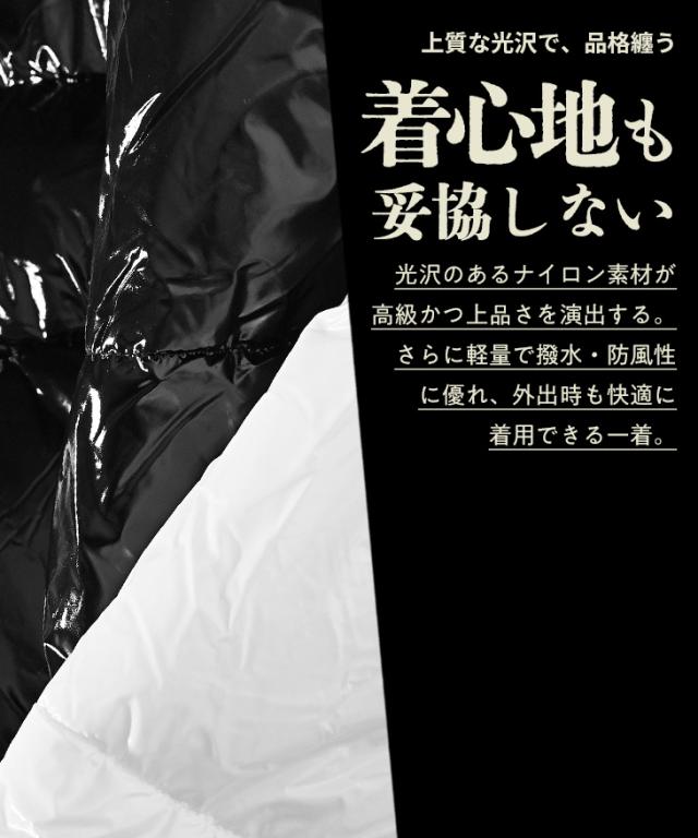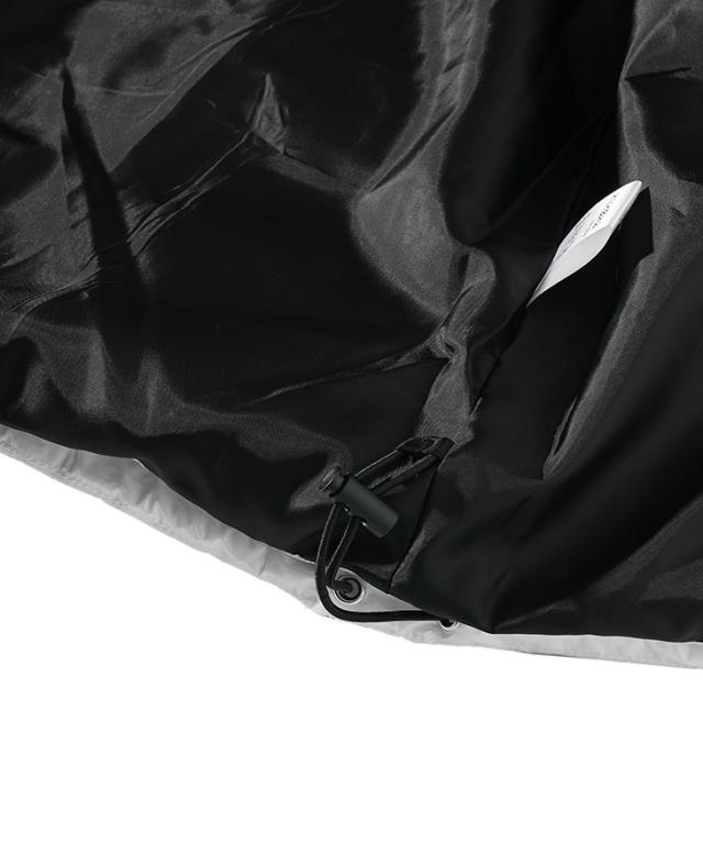艶やかに視線を奪う、魅惑のアウター『ロゴテープブルゾン』【ロゴテープブルゾン】■Design/デザインフードからファスナー部分に施されたロゴテープがアクセントとなり、スポーティーな印象を与えるロゴテープブルゾン。シャイニーブラックとシャイニーホワイトのカラーで、上品さを保ちながらもアクティブな印象をプラス。ジャストシルエットに仕上げつつ、裾の内側に配したドローコードでフィット感を調節可能。アウトドアやタウンユースなど、幅広いシーンで活躍するデザイン。シンプルながらもディテールにこだわり、日常にスポーティーな上質感を添える一着です。