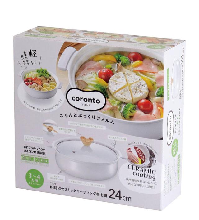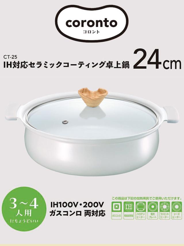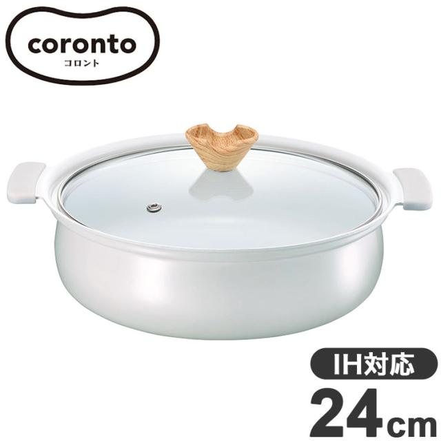 coronto コロント 卓上鍋 24cm PFASフリー IH対応 ガス火対応 グレー なべ 鍋 ガラス蓋付き ガラス蓋 セラミックコーティング セラミック 卓上 しゃぶしゃぶ すき焼き 一人鍋 大人数 パーティ(代引不可)【送料無料】