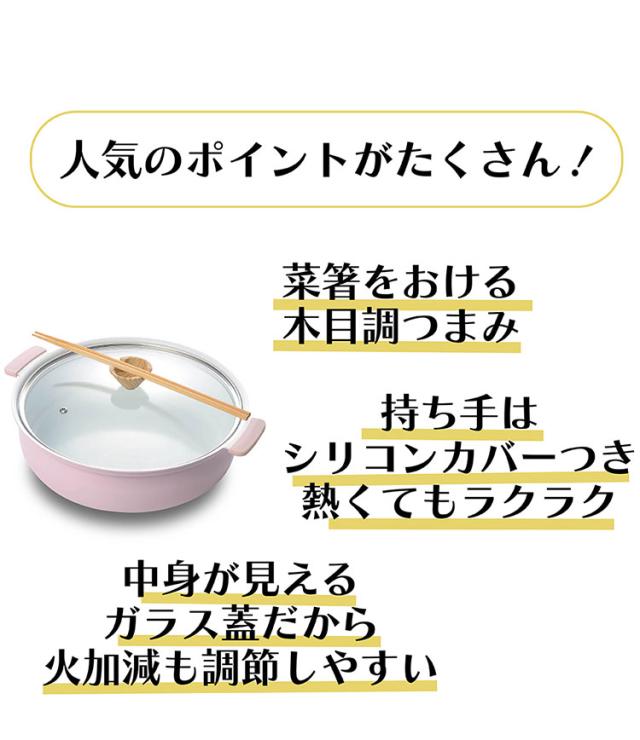 全面物理強化ガラスのフタで調理中の様子が見やすく、木目調シリコーンコーティングのつまみでデザイン性と安全性を両立。
