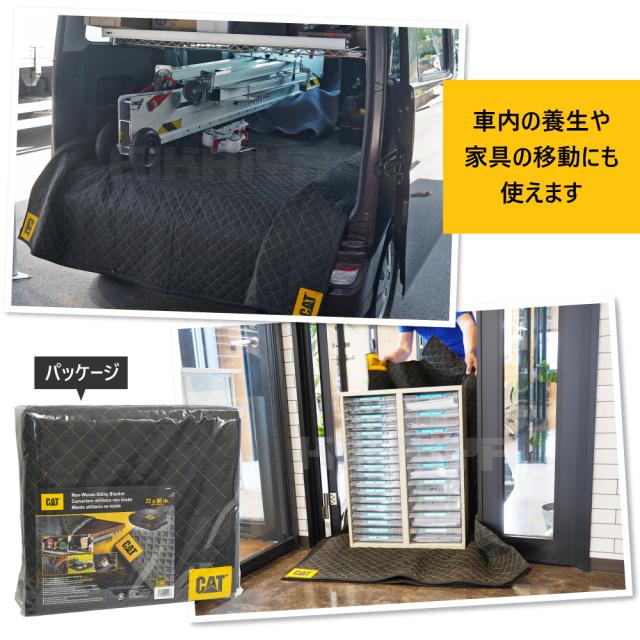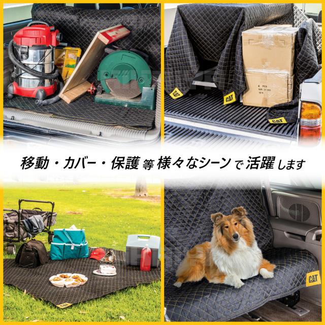 家具、家電、ギアなどの移動、カバー、保護に 柔らかな手触りで見た目も美しい ●72×80インチのゆったりとしたサイズで、再生繊維を詰め込んだパッド入り ●補強されたコーナーと耐久性のあるロックステッチの菱形模様で仕上げられています ●各コーナーには象徴的なCat(R)ロゴが施されています ●移動中の家具や家電の保護、ペットや荷物による車内へのダメージ防止など、あらゆる用途に最適 ●キャンプやピクニックの際に、マットとしての使用もオススメです ※ご家庭での洗濯はご遠慮ください 品番:YCM-K |
