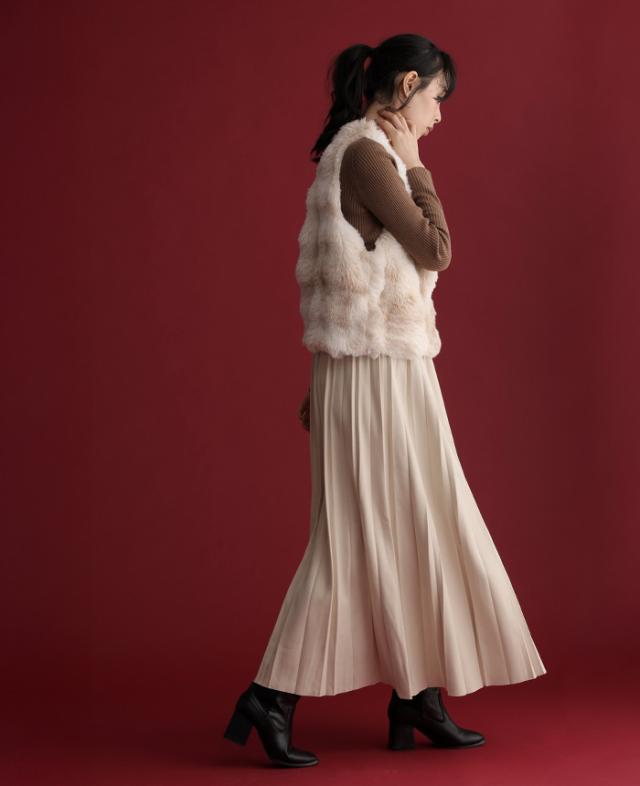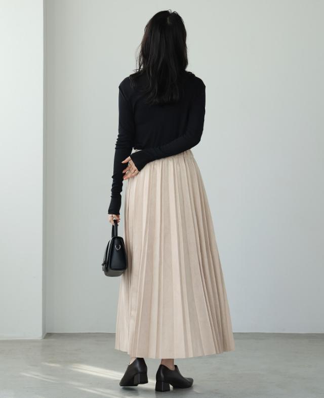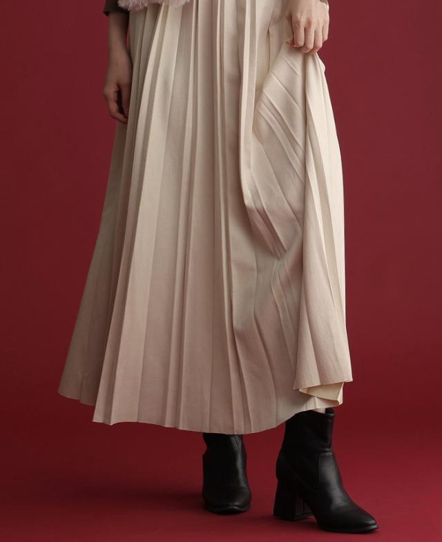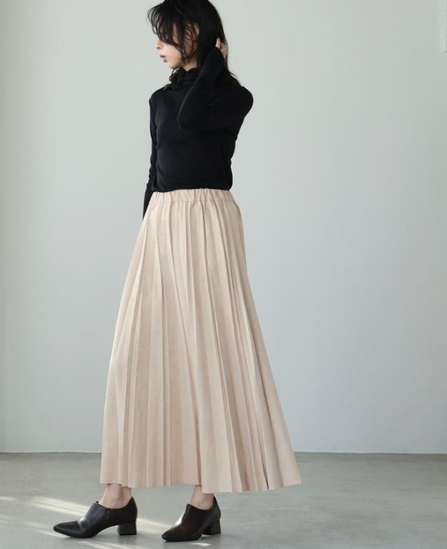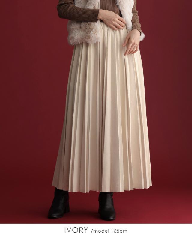 [新作限定P10%×送料無料]マシュマロスエードランダムプリーツスカート【メール便不可】