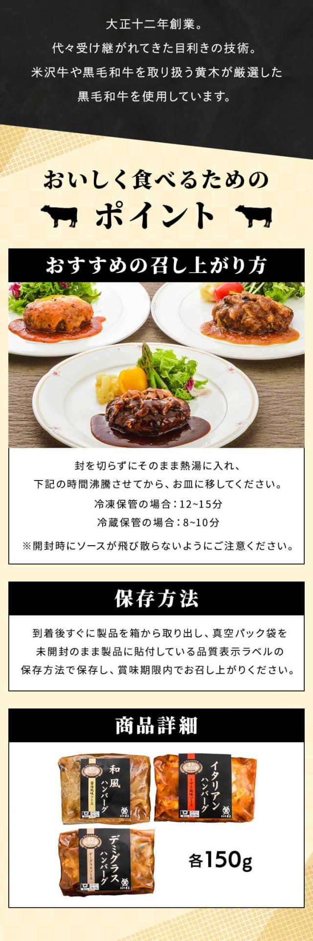 デミグラス・イタリアン・和風ハンバーグ/150g×各3個