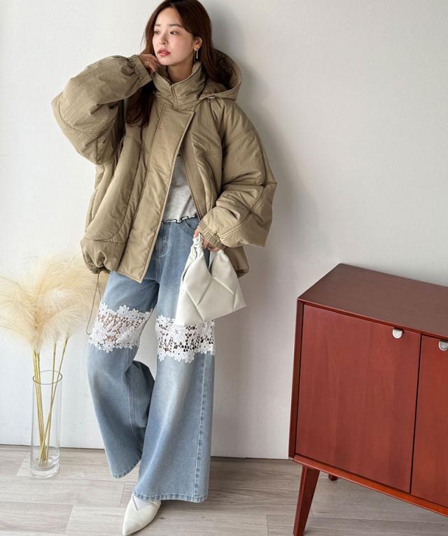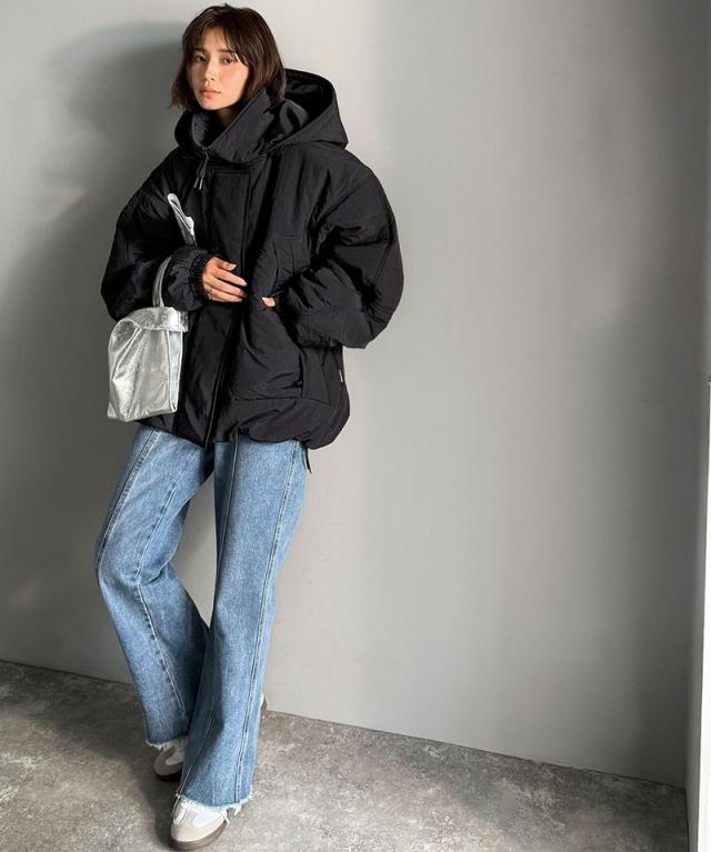 クラシカルエルフ冬新作 java ジャバコラボ ダウンジャケット レディース コート フード付き 中綿 モンスターブルゾン ボリュームシルエット 防寒性 おしゃれ 取り外し可能 ゆとり 重ね着 暖かく シンプル 大きいサイズ 2025aw jv1265012