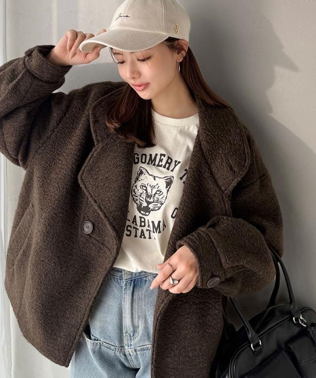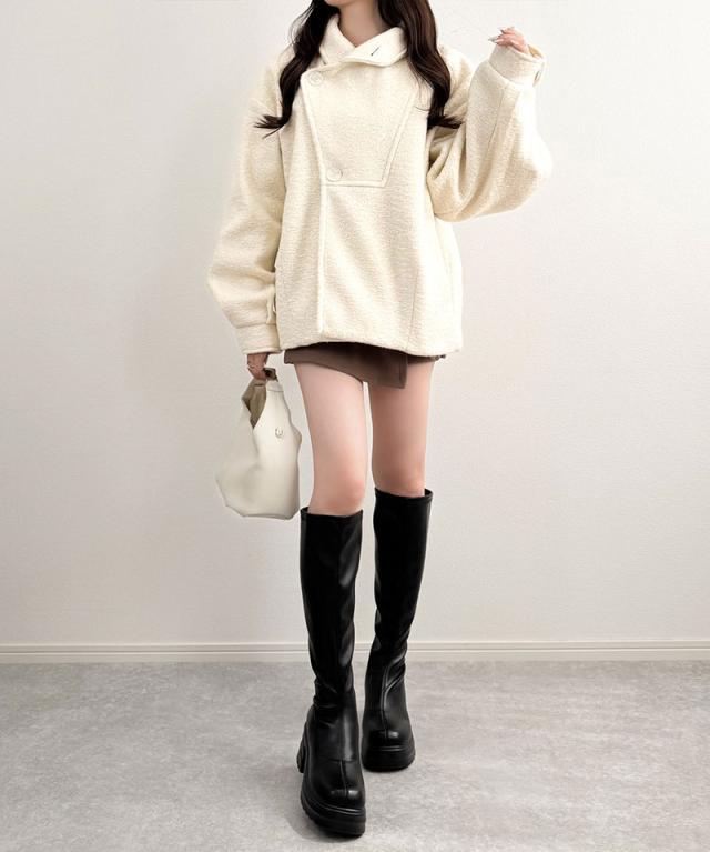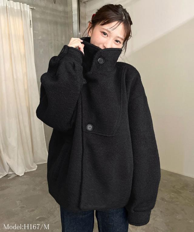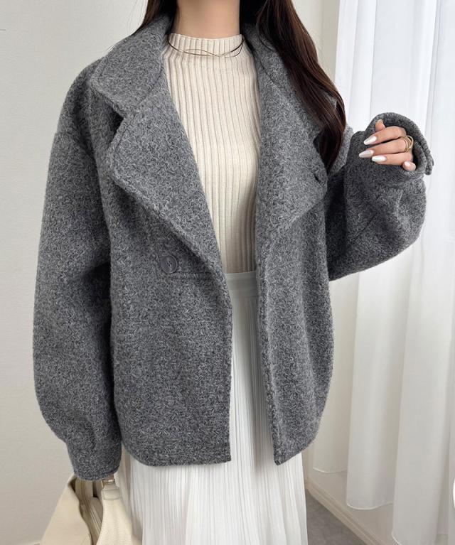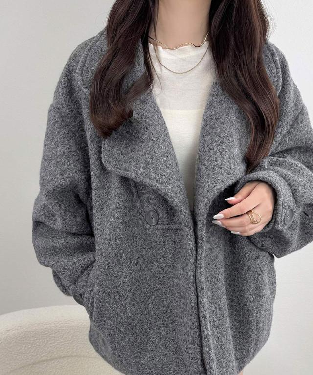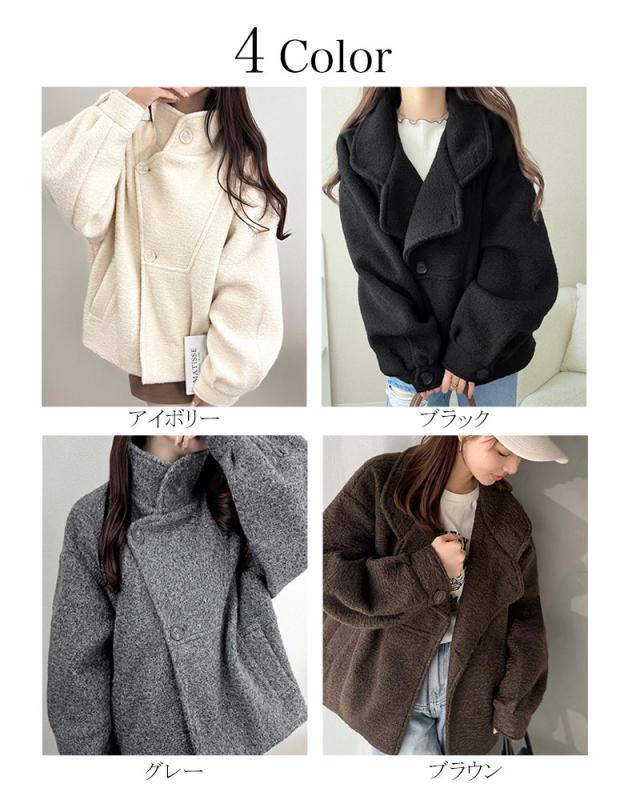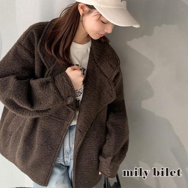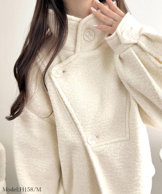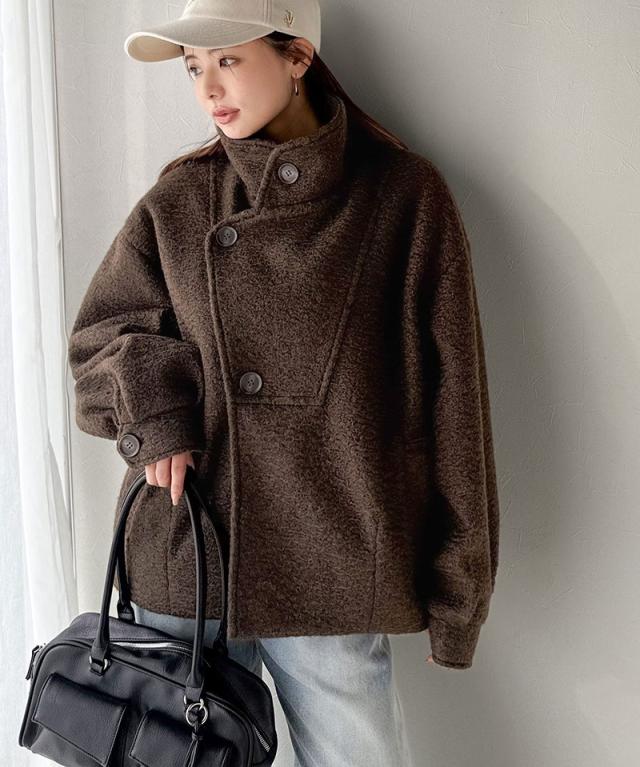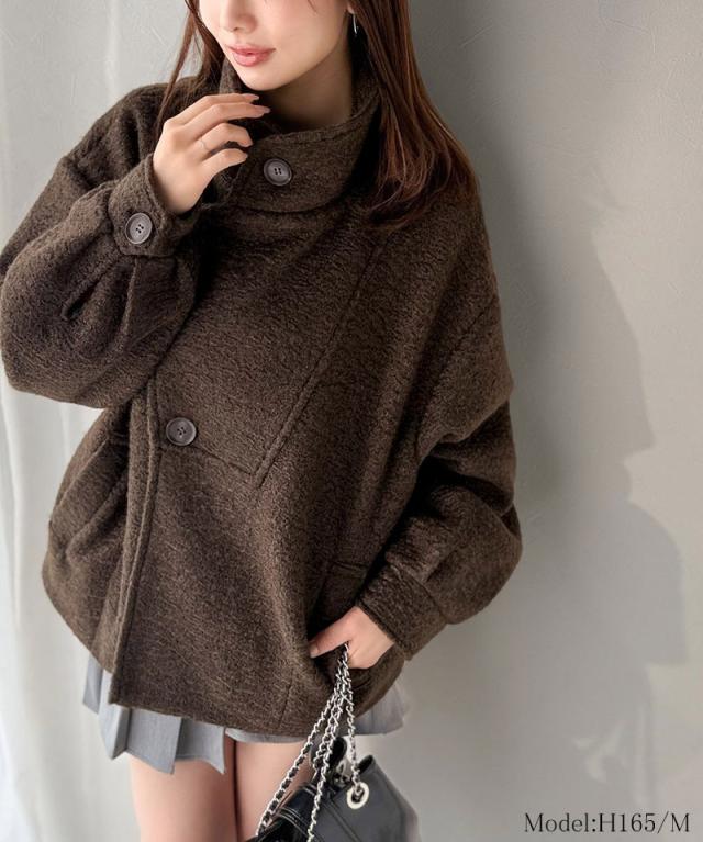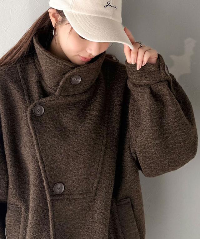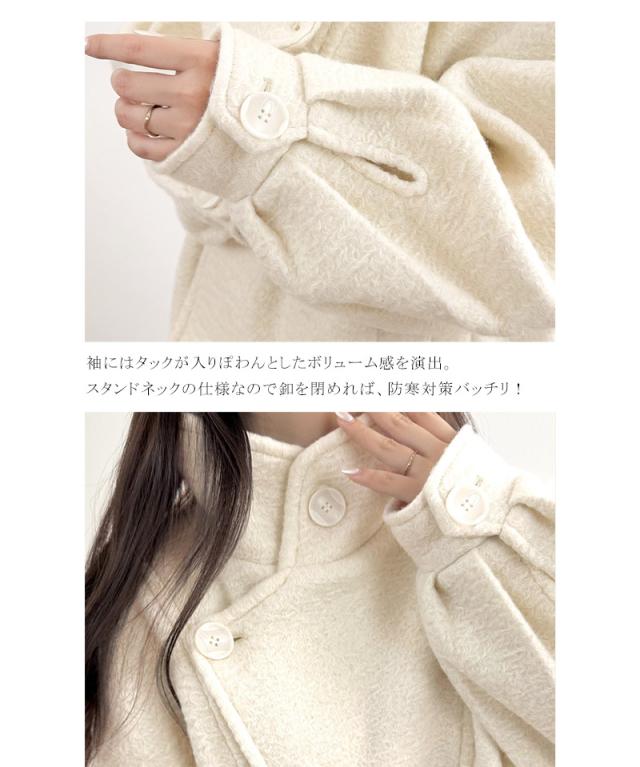 クラシカルエルフ冬新作 mily bilet アウター コート レディース ウールライク リングニット スタンドカラーコート コクーンシルエット おしゃれ 高級感 ウールライク素材 温かい ミドル丈 ぽわん袖 ボリューム袖 ふんわり柔らか 大きいサイズ 2025aw mi1019095