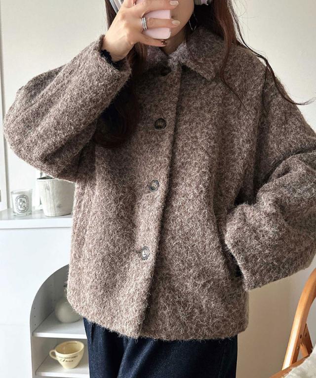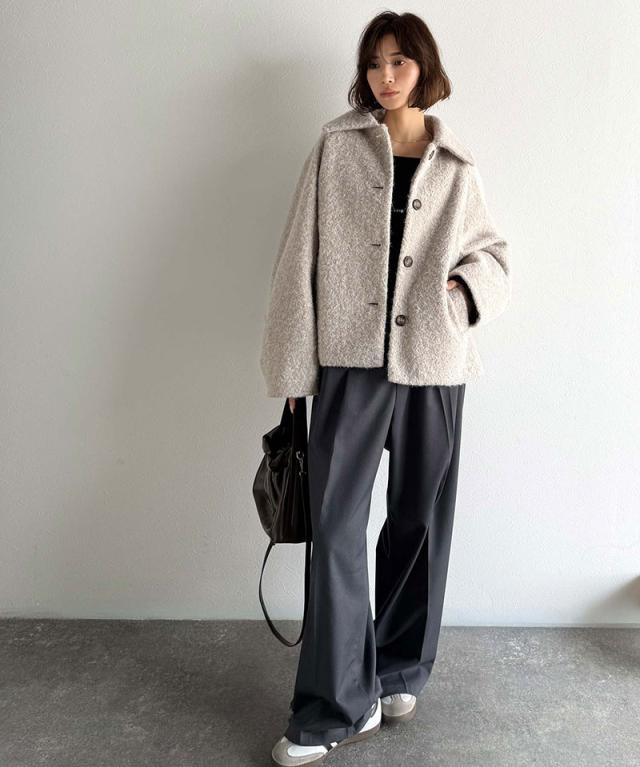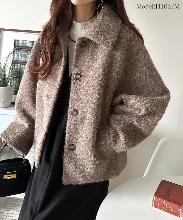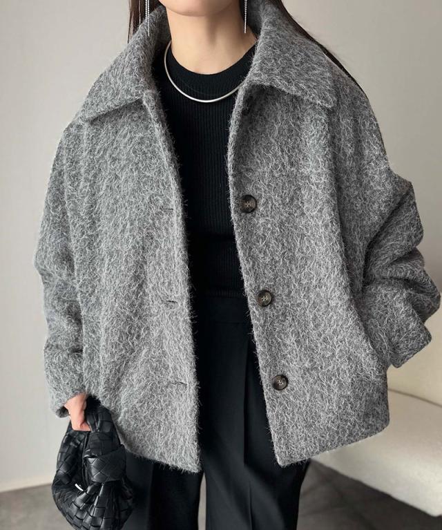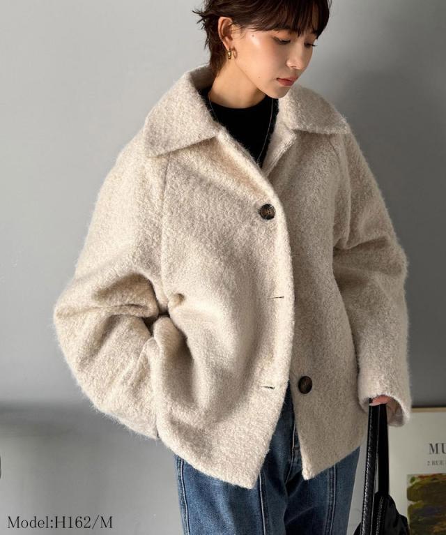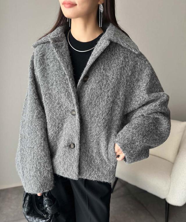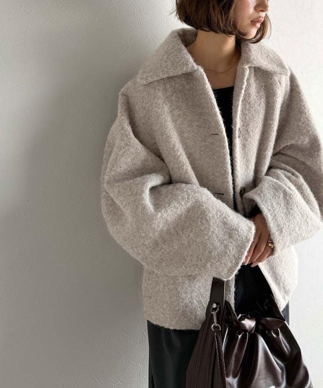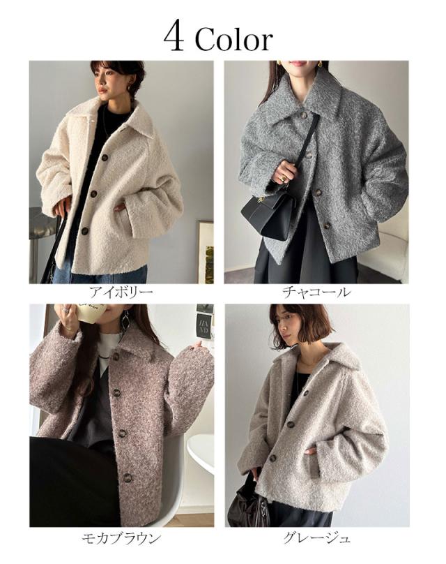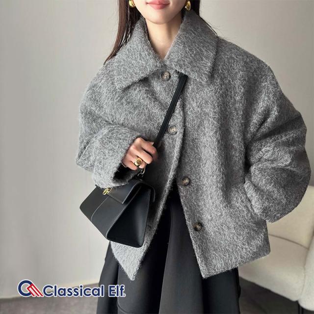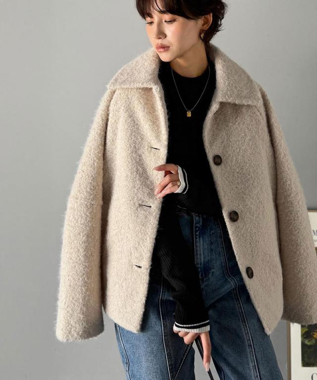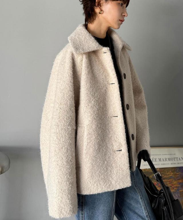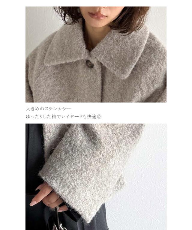 クラシカルエルフ冬新作 ジャケット レディース アウター コート リングシャギー ショート丈 コクーンシルエット ふんわり カジュアル きれいめ シャギー ゆったり 万能アウター ステンカラー エレガント 大きいサイズ 2025aw ce1240096