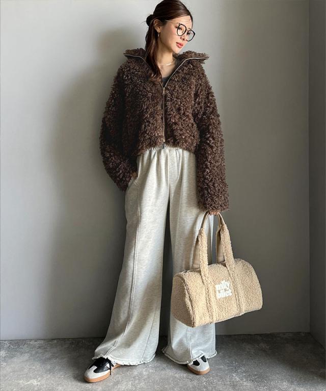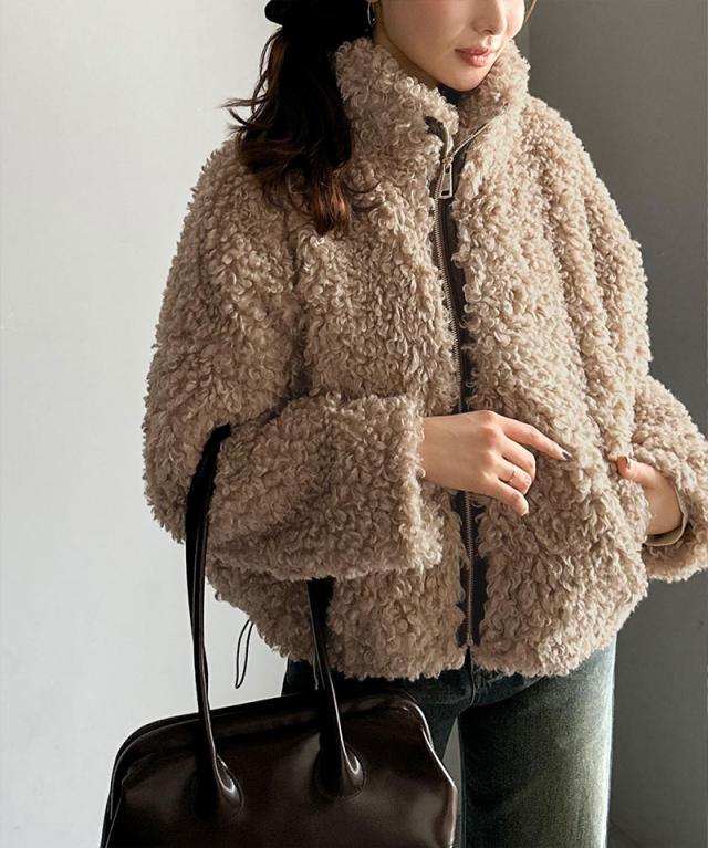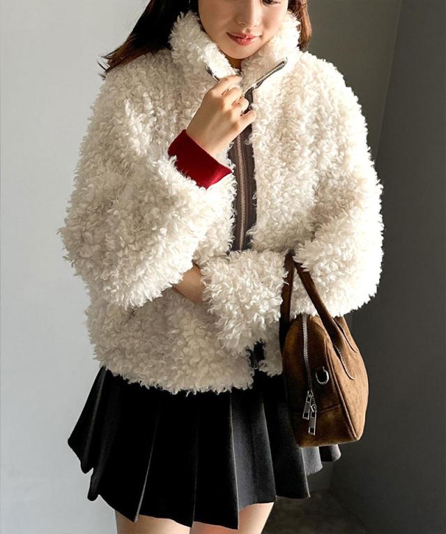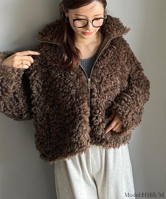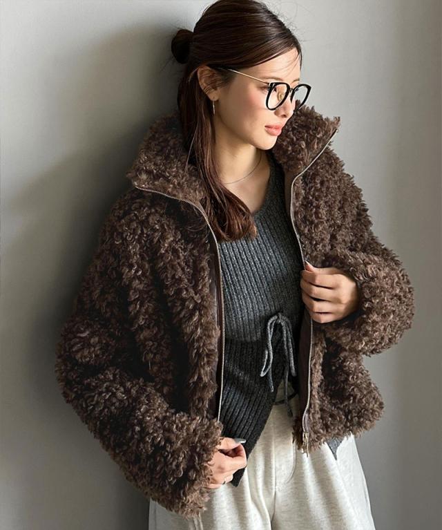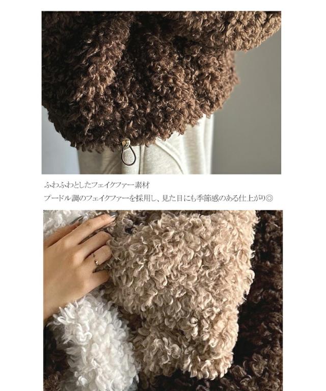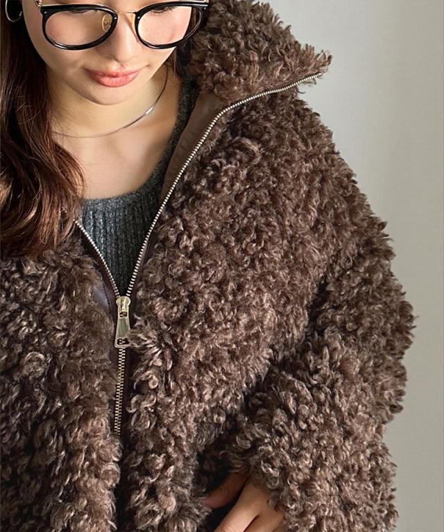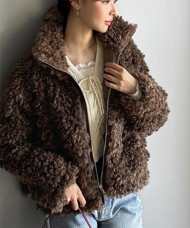 クラシカルエルフ冬新作 mily bilet ジャケット レディース アウター ふわふわ ボリューム感 フェイク レザー テープ使い プードルファー ブルゾン 大きいサイズ 2025aw mi1329050