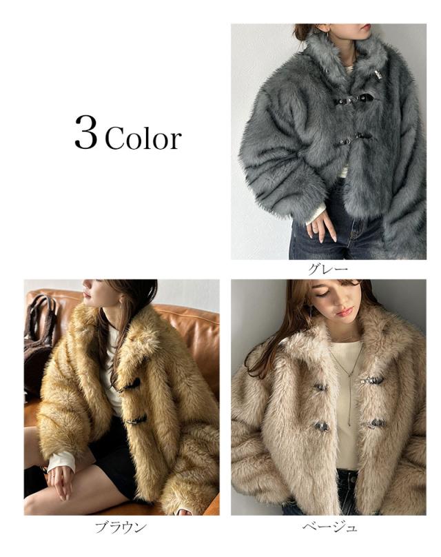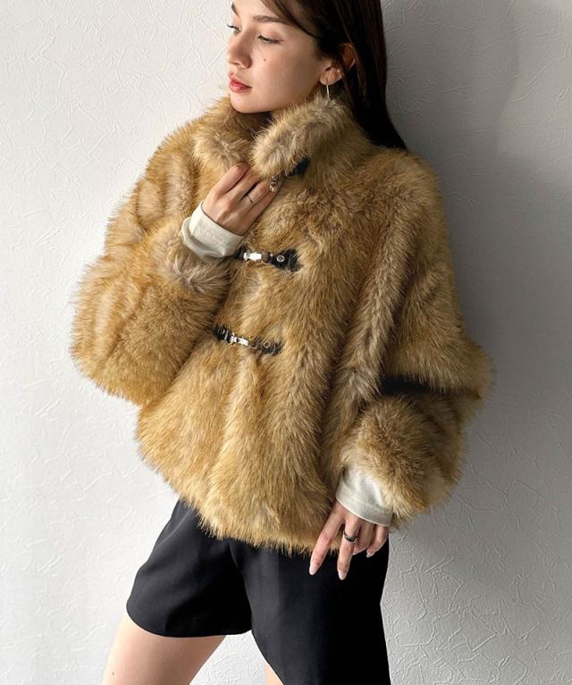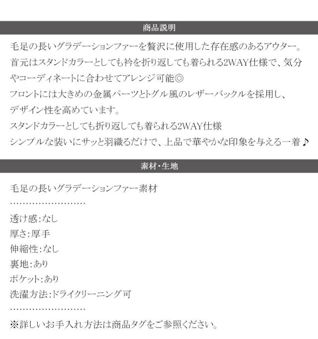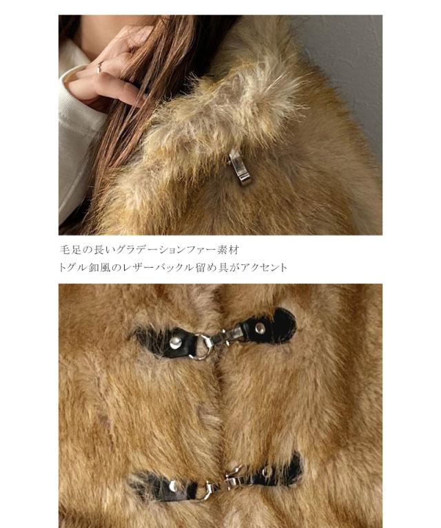 クラシカルエルフ冬新作 mily bilet コート レディース ファー アウター ブルゾン フェイクファー レザーバックル 上品 華やか グラデーション スタンドカラー 羽織る トグル釦 2WAY 大人フェミニン ガーリー 大きいサイズ 2025aw mi1329052