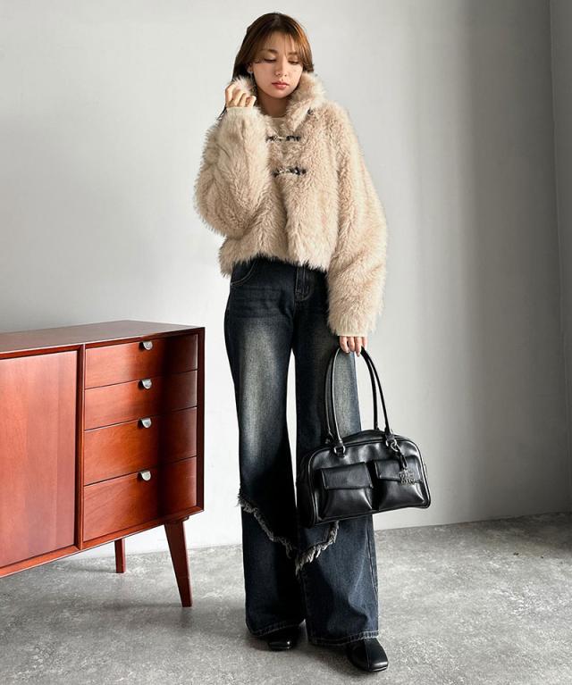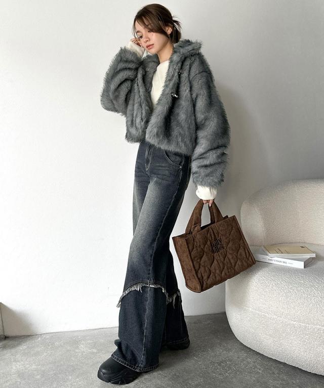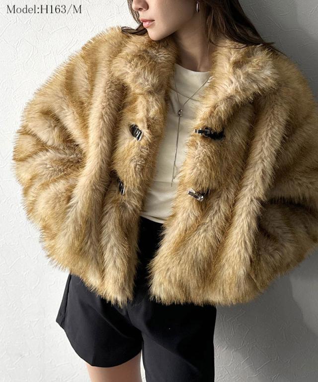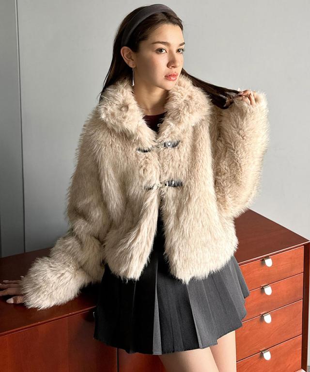 毛足の長いグラデーションファーを贅沢に使用した存在感のあるアウター。