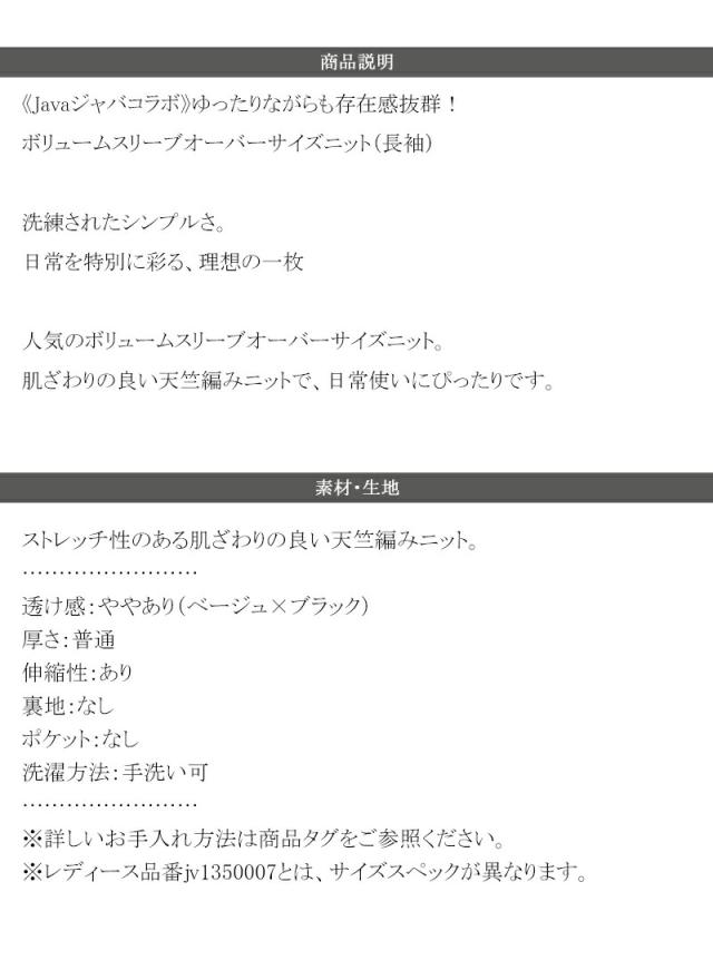 クラシカルエルフ冬新作 java ジャバコラボ ニット メンズ セーター トップス ボリューム スリーブ 長袖 ゆるっと オーバーサイズ 男女兼用 ユニセックス レディース 大きいサイズ 2025aw jm1350007