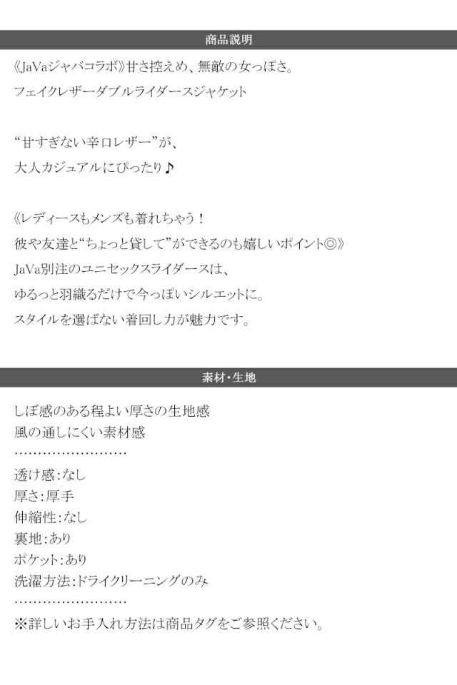 クラシカルエルフ冬新作 java ジャバコラボ ライダースジャケット レディース ジャケット アウター フェイク レザー ダブル ライダース 男女兼用 ユニセックス メンズ 大きいサイズ 2025aw jv1010466