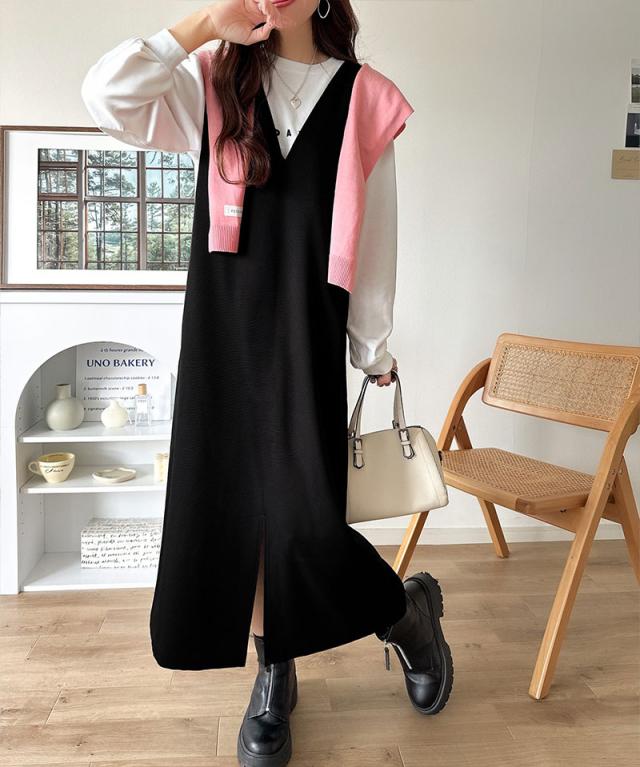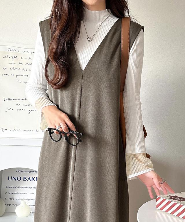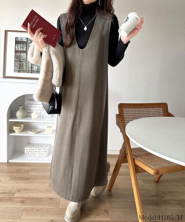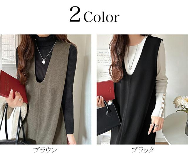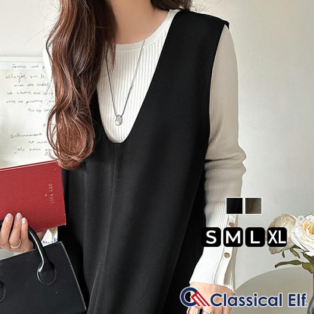 クラシカルエルフ冬新作 ワンピース きれいめ レディース 着こなし 自由自在 深U ネック Vネック 前後 2way ワンピ ゆるっと オーバーサイズ レイヤードコーデ 大きいサイズ 2025aw ce1025009