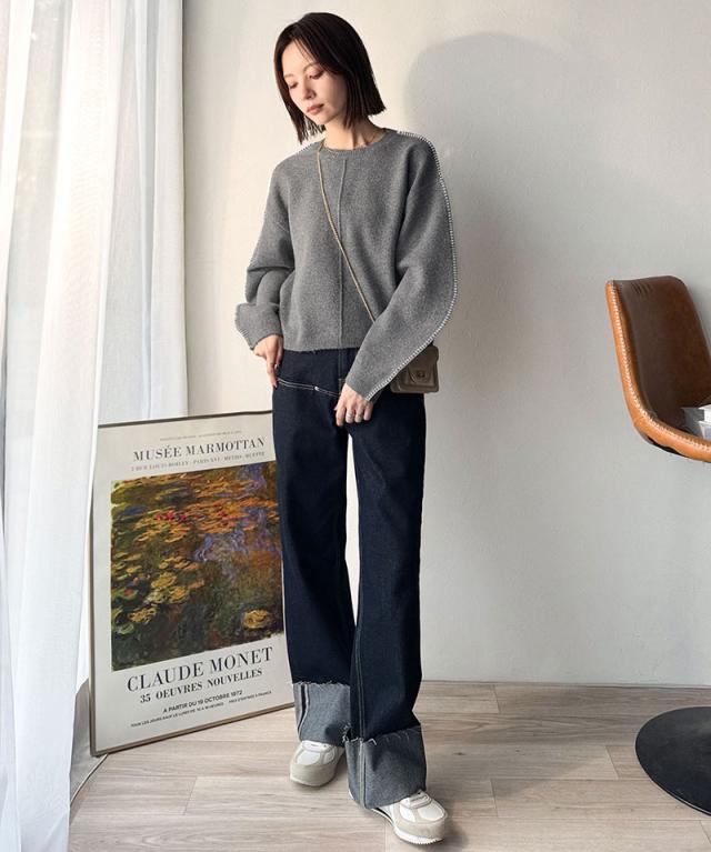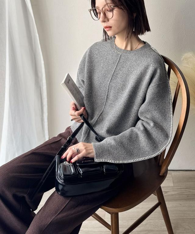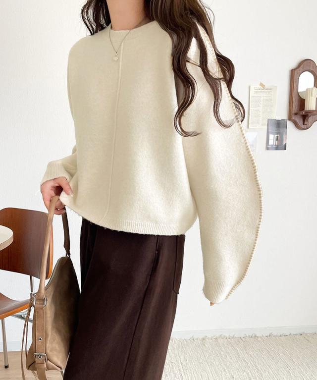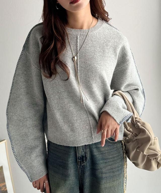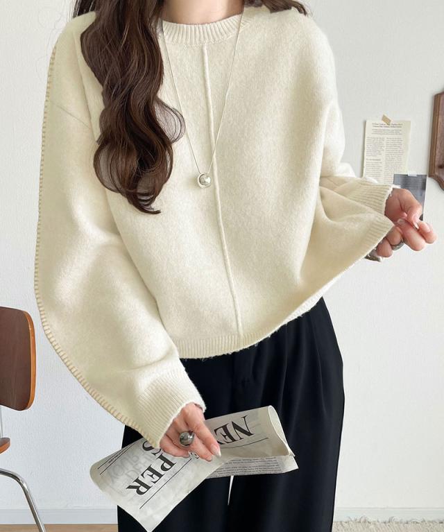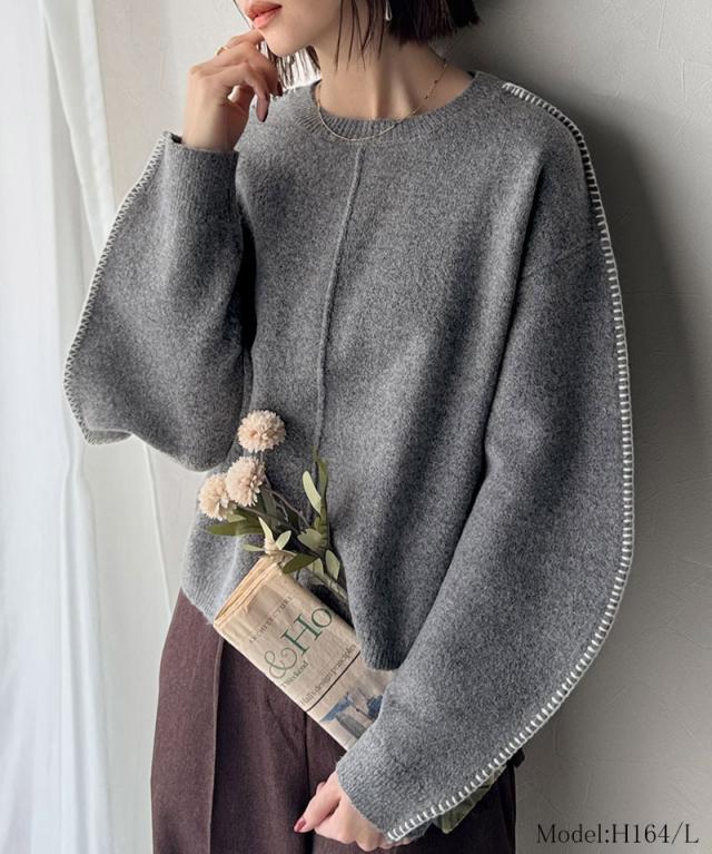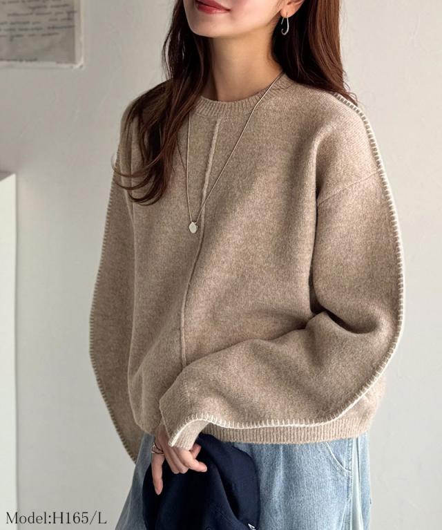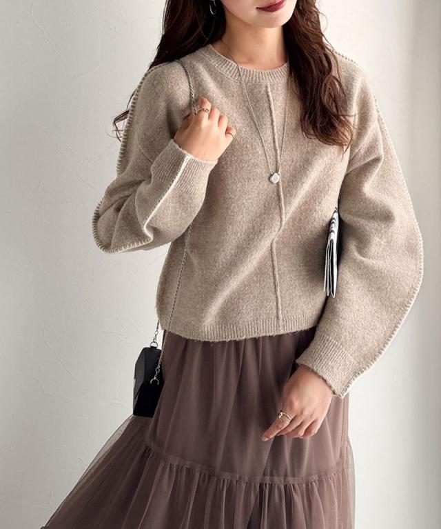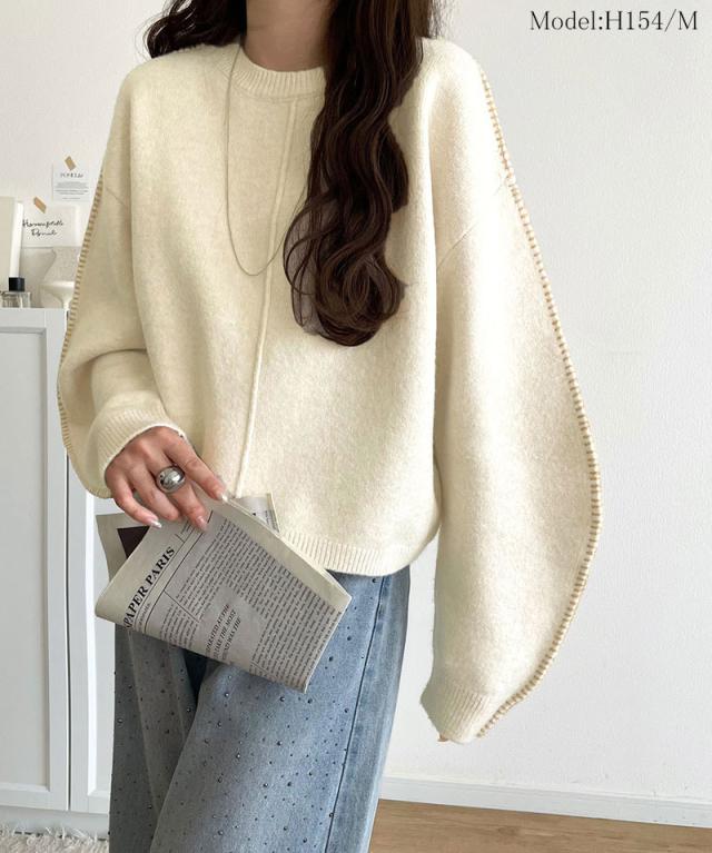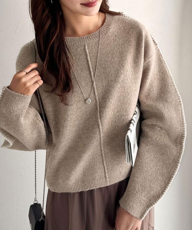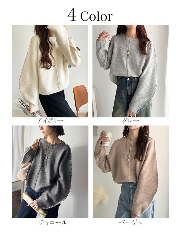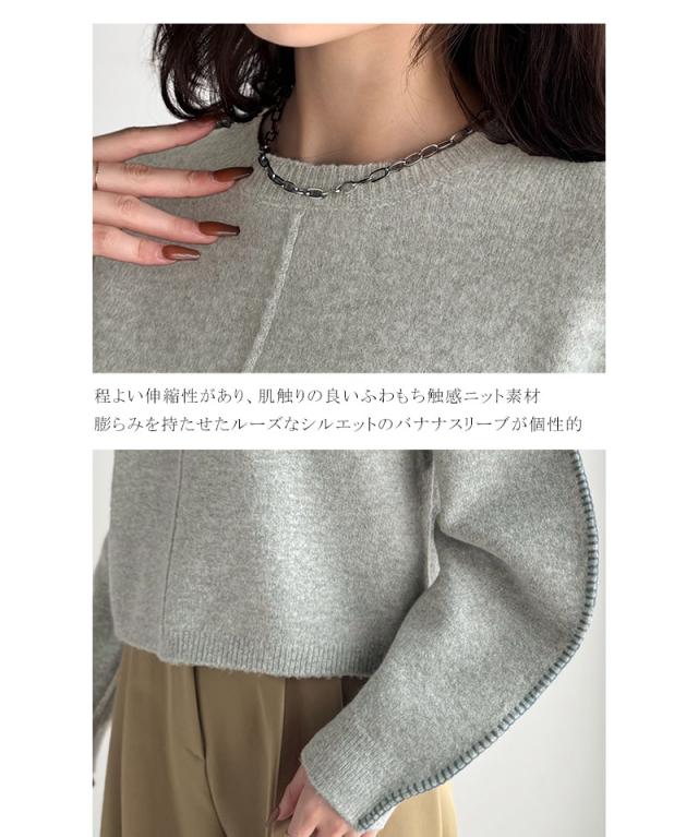 クラシカルエルフ冬新作 java ジャバコラボ ニット レディース きれいめ トップス バナナスリーブ プルオーバー お洒落 カジュアル フォーマル ざっくり バイカラー ルーズ 体型カバー シンプル デイリーユース オシャレ 大きいサイズ 2025aw jv1020272